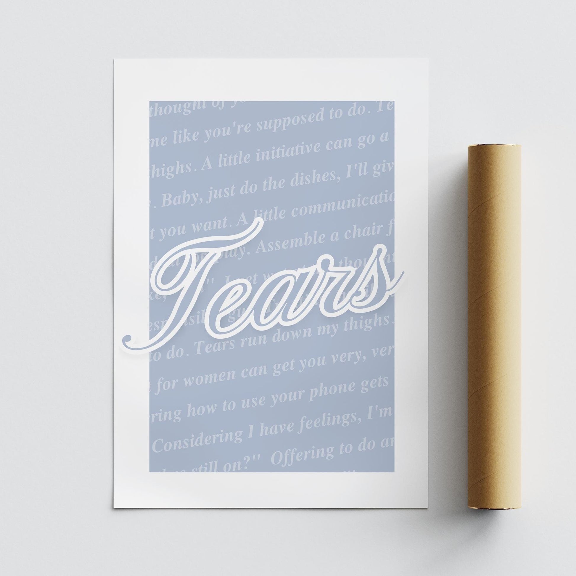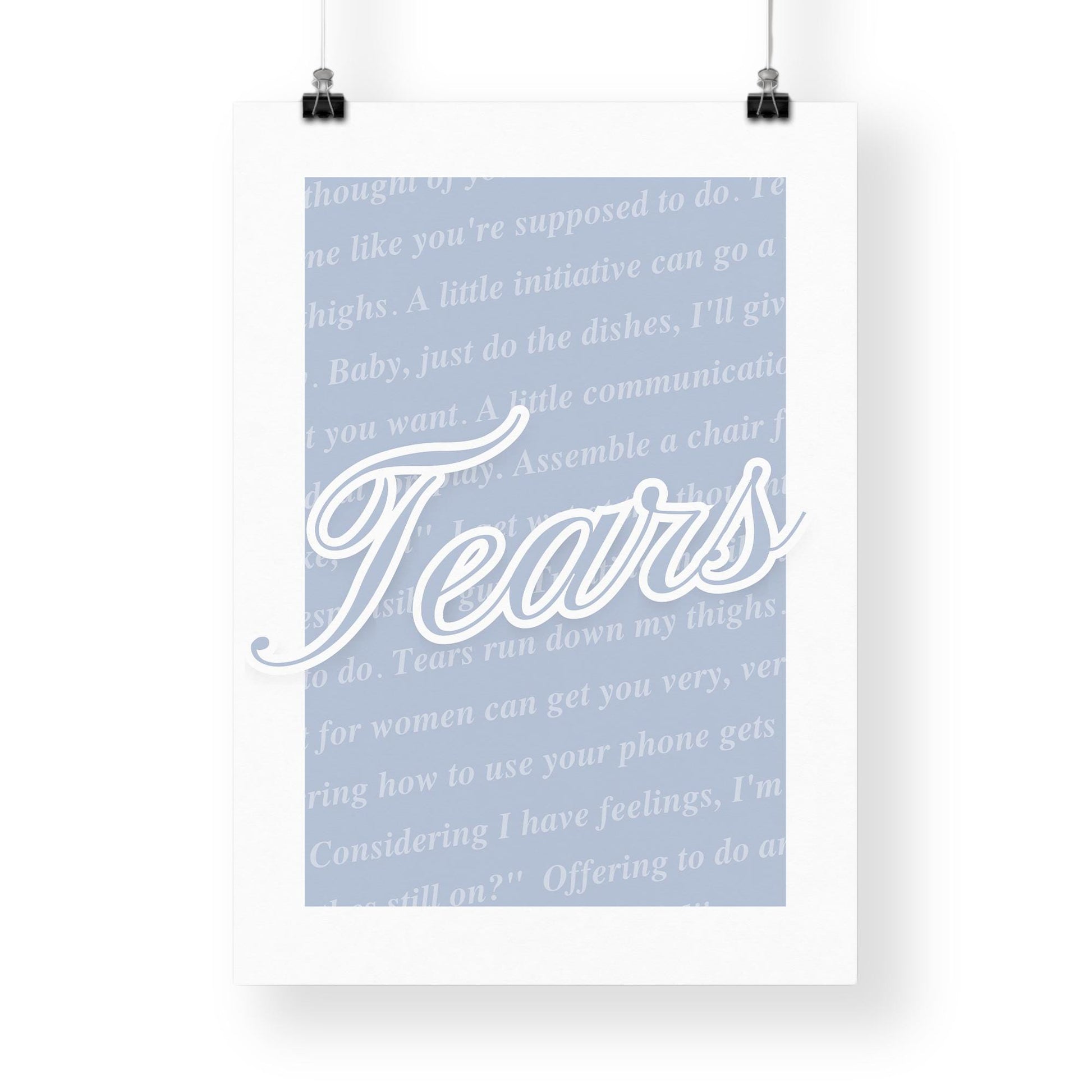 Music Poster: Script Typography - Tears Run Down My Thighs | Pop Lyric-Inspired Print | Music Wall Art | Girly Blue Home Decor