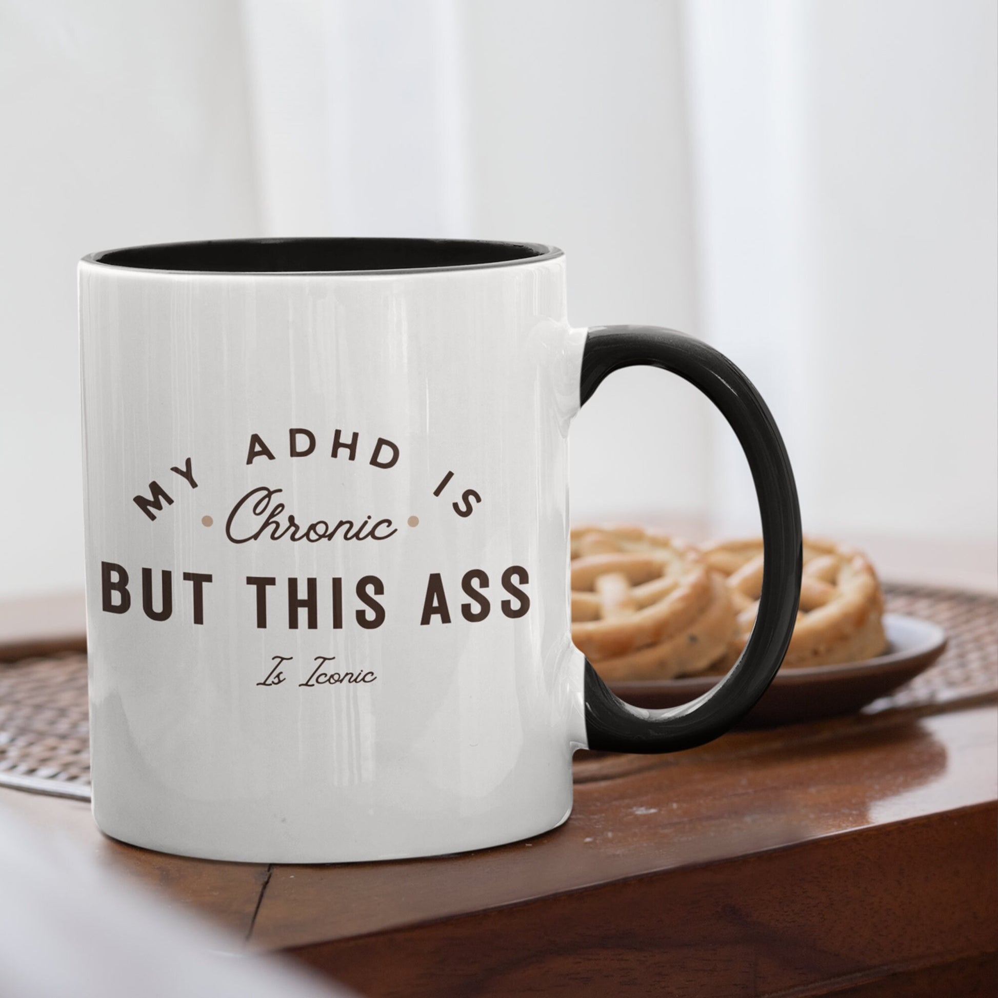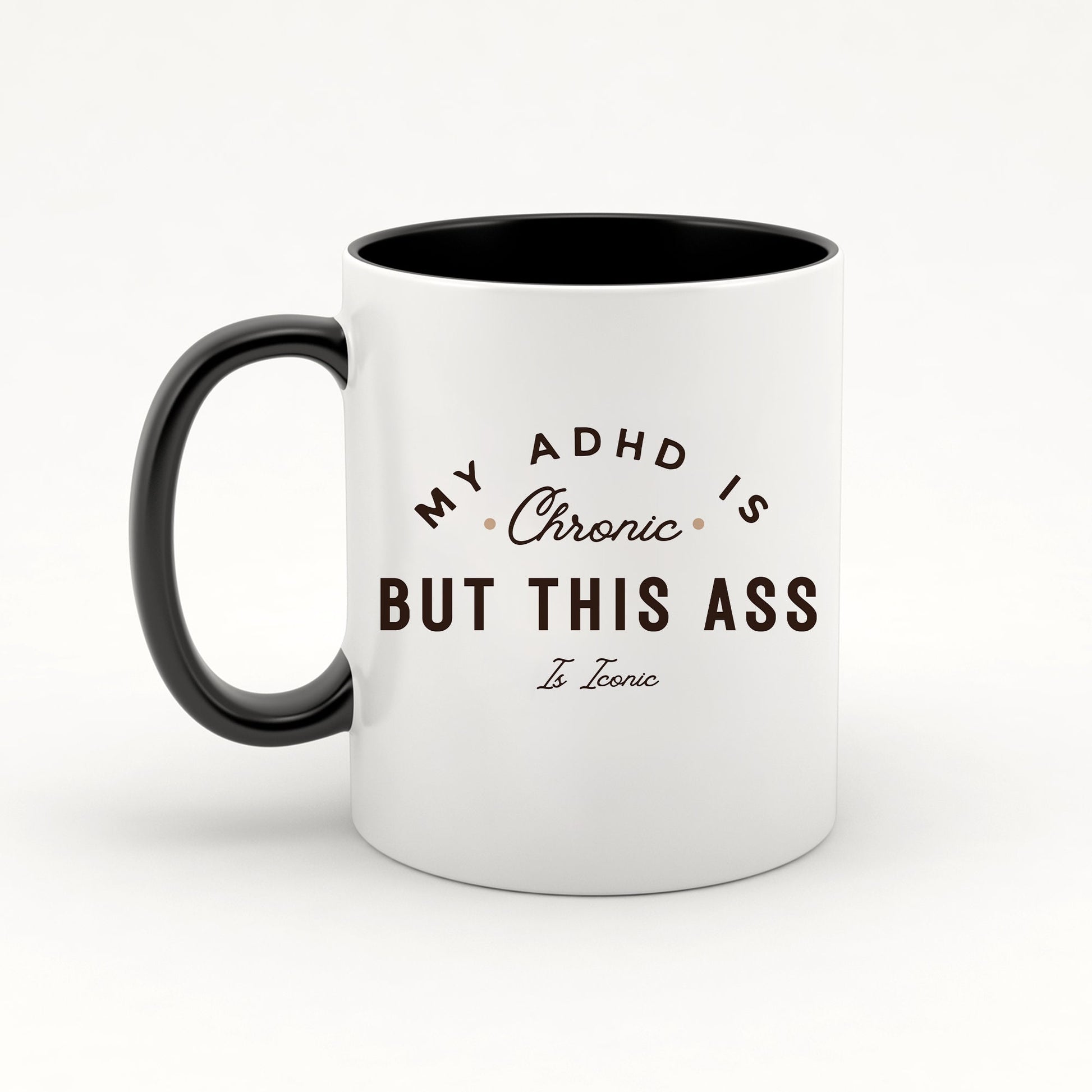 My ADHD Is Chronic But This Ass Is Iconic Mug, Text Design, ADHD Mug, Humour Gifts, Fun Gifts, Ceramic Mug, Perfect Funny Joke Gift