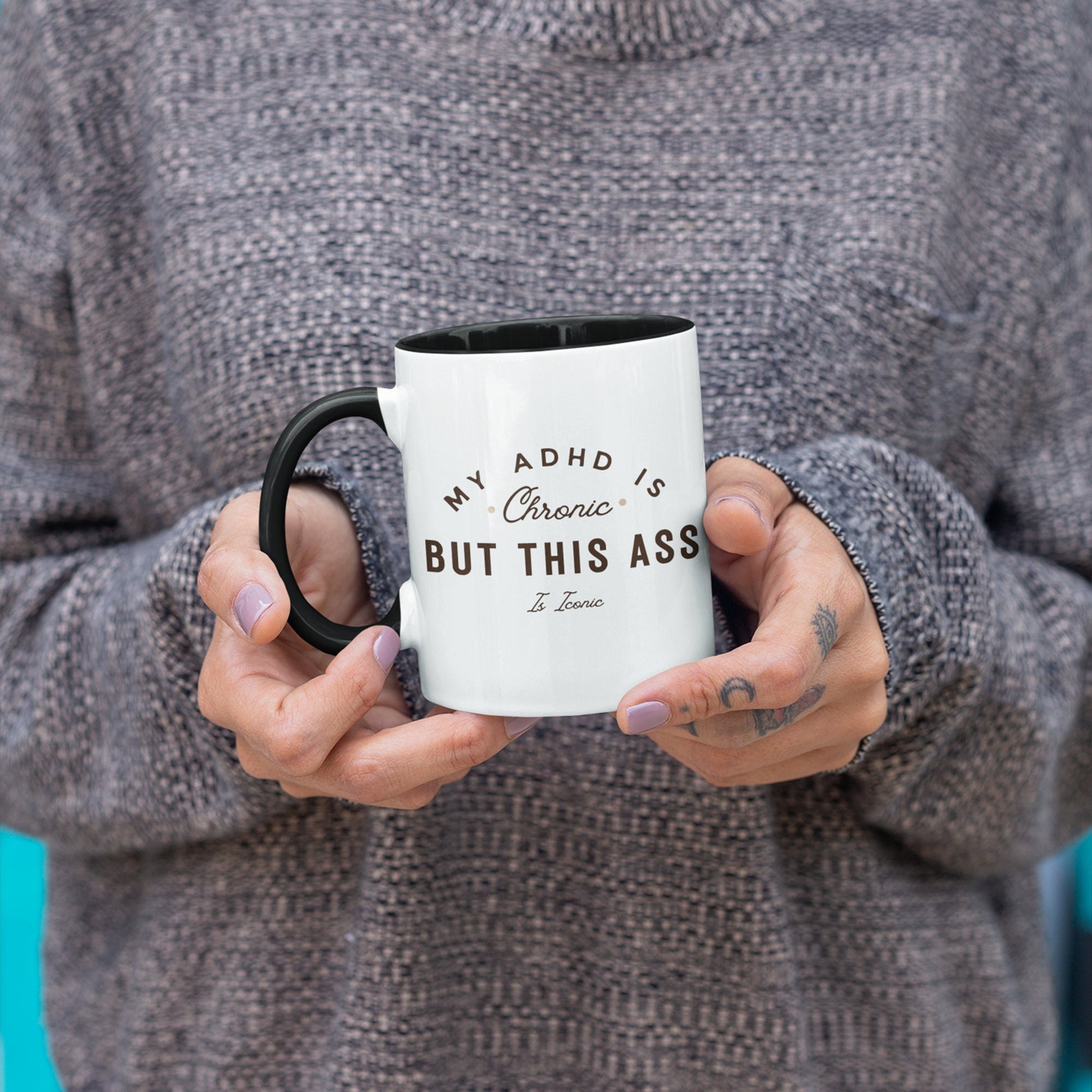 Brighten up your mornings and keep your sense of humor intact with our "My ADHD is Chronic but My Ass is Iconic" mug! This playful and empowering mug is perfect for those who embrace their unique qualities and love a good laugh. Whether you‘re sipping your favorite coffee, tea, or hot chocolate, this mug is sure to become your go-to companion.