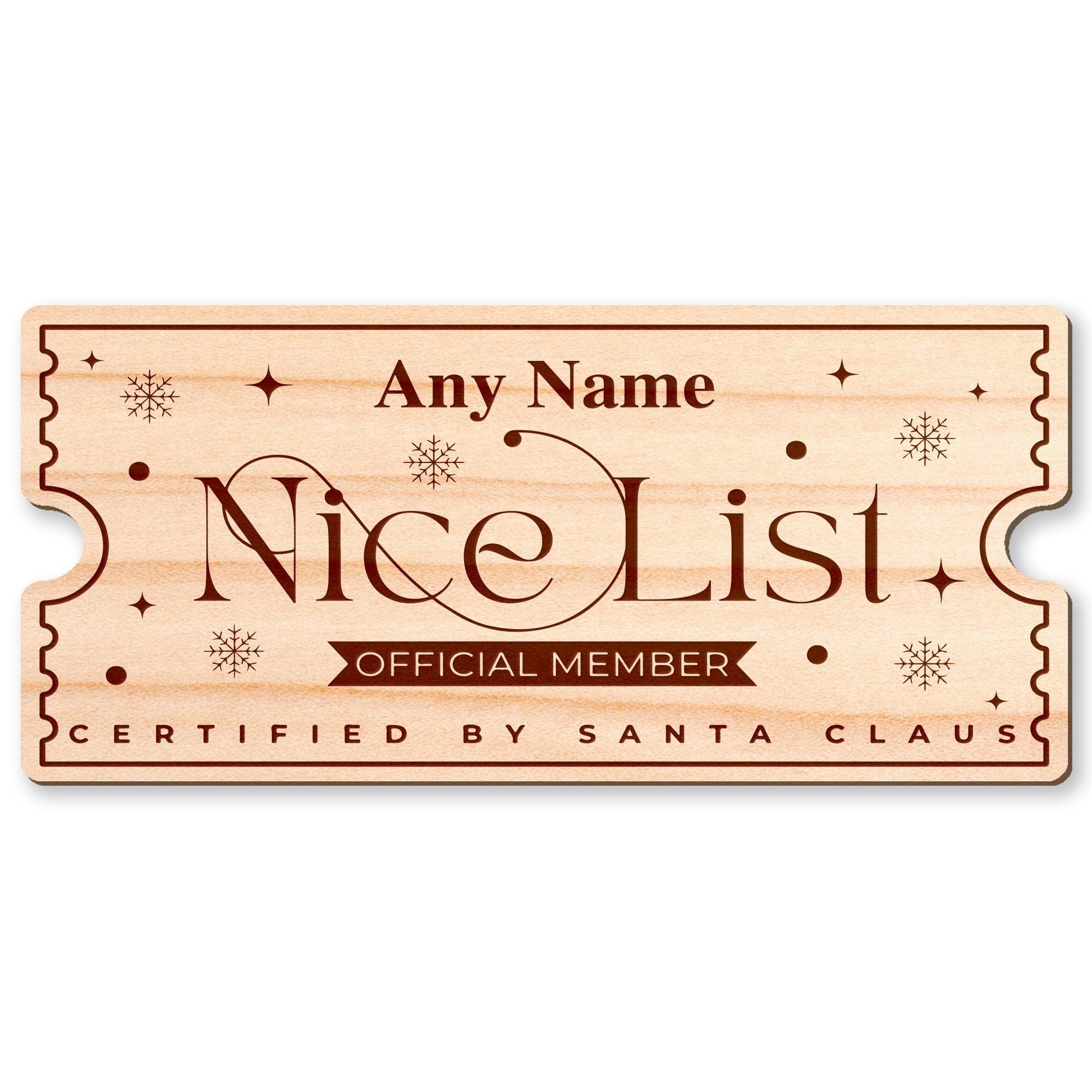 Nice List Ticket - Snowflakes: Personalised Santa's Nice List Wooden Ticket Certificate, Christmas Keepsake for Kids, Magic Christmas Gift