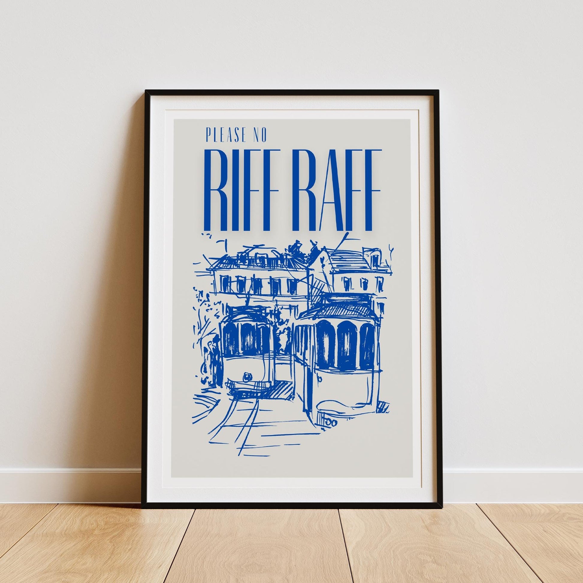 Printed on high-quality paper, our "No Riff Raff" poster features crisp, clean lines and a design that complements any decor style. It‘s an excellent addition to entryways, living rooms, workspaces, or even cafes and boutiques.
