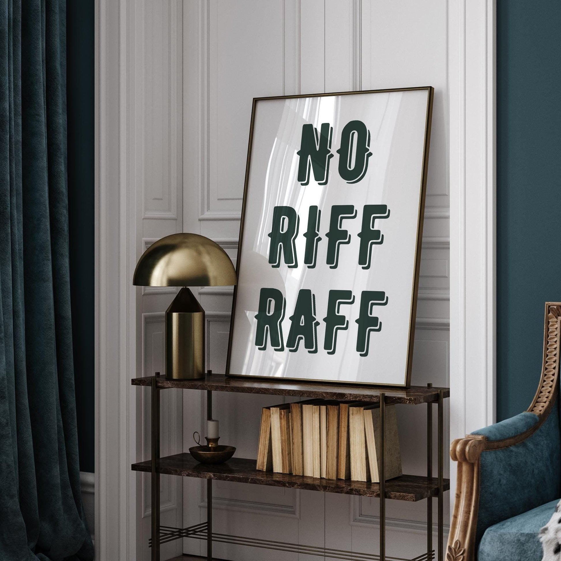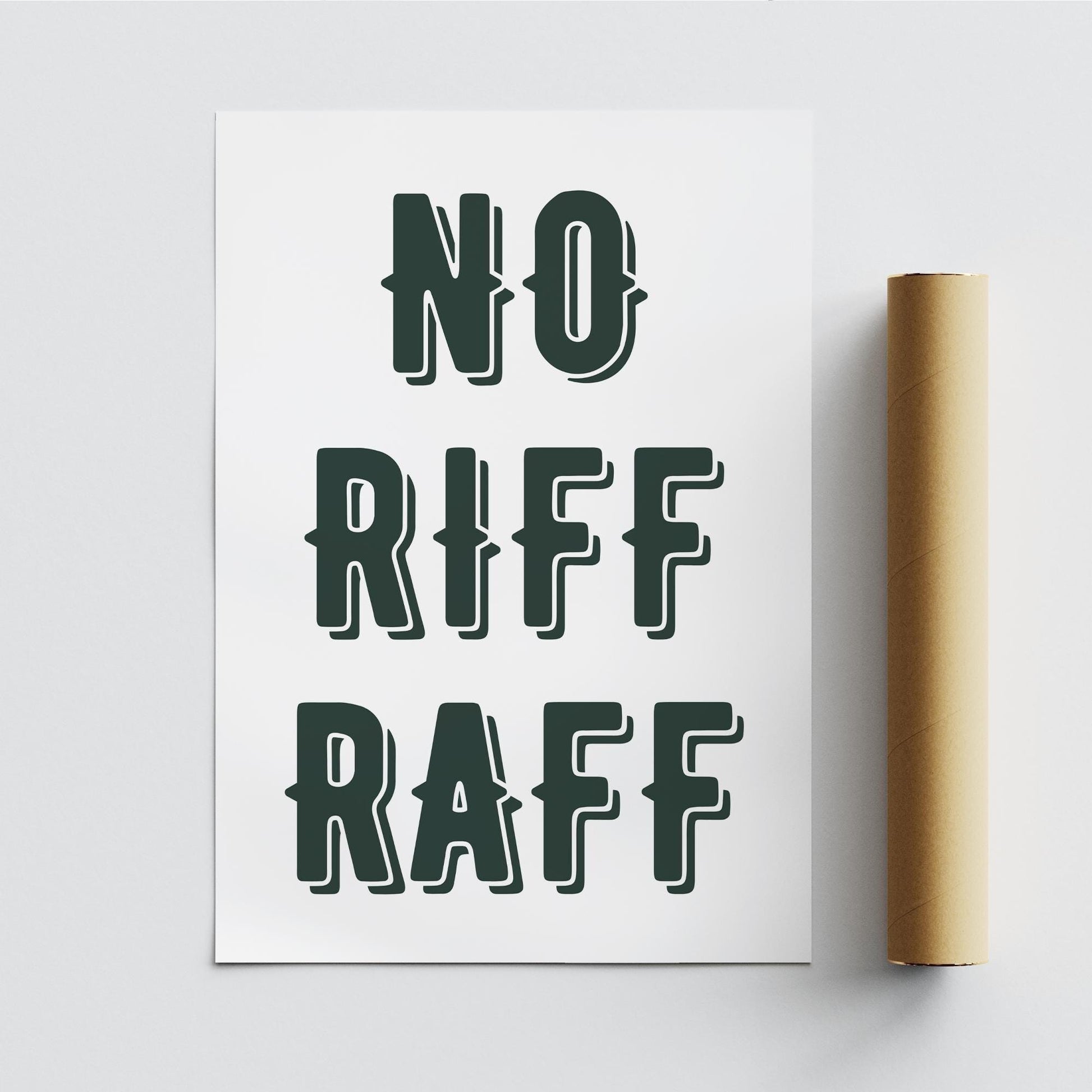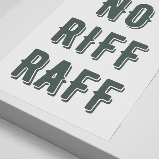 Add a touch of humour and sophistication to your space with our "No Riff Raff" quote poster. This typography print is perfect for anyone looking to make a statement while keeping their environment stylish and refined. Whether you‘re decorating your home, office, or business, this modern wall art decor is sure to catch the eye and bring a smile to anyone who sees it.