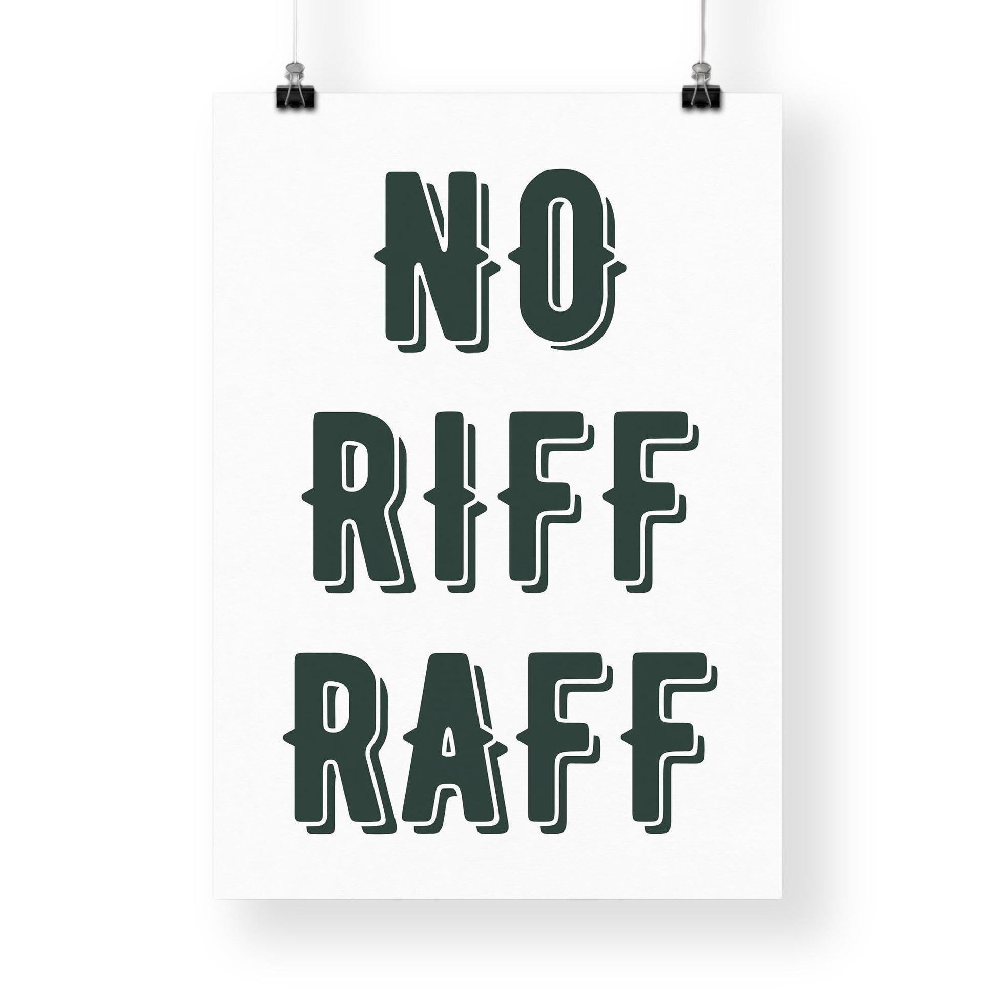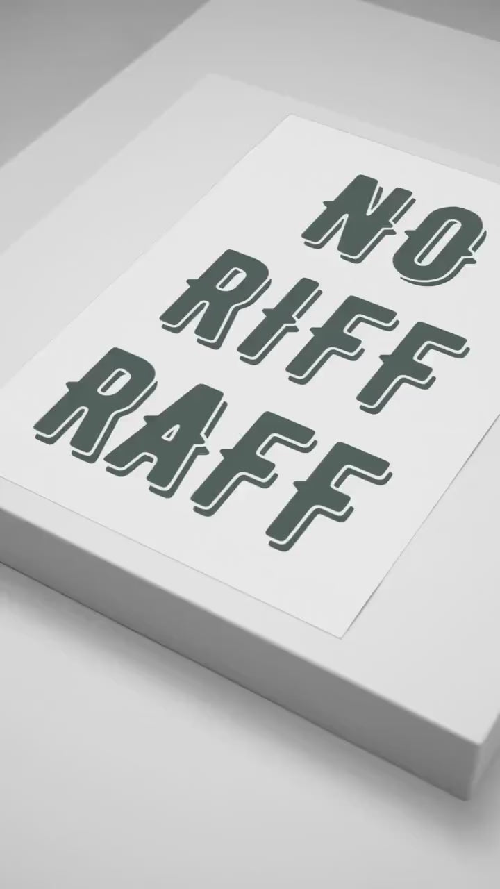 Printed on high-quality paper, our "No Riff Raff" poster features crisp, clean lines and a design that complements any decor style. It‘s an excellent addition to entryways, living rooms, workspaces, or even cafes and boutiques.