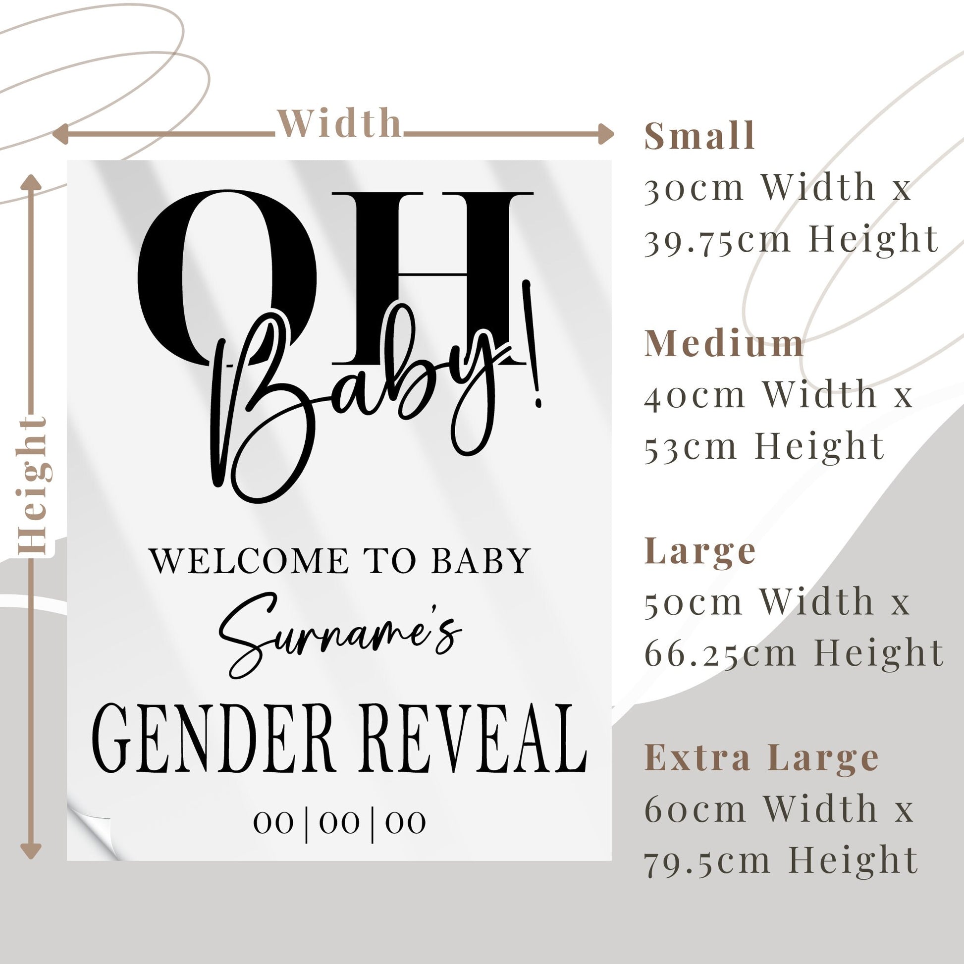 Celebrate your little one with our personalised ‘Oh Baby Gender Reveal‘ Sign - perfect for baby showers and gender reveal parties. Simply add the baby‘s surname and party date to this sign and let the good times roll!