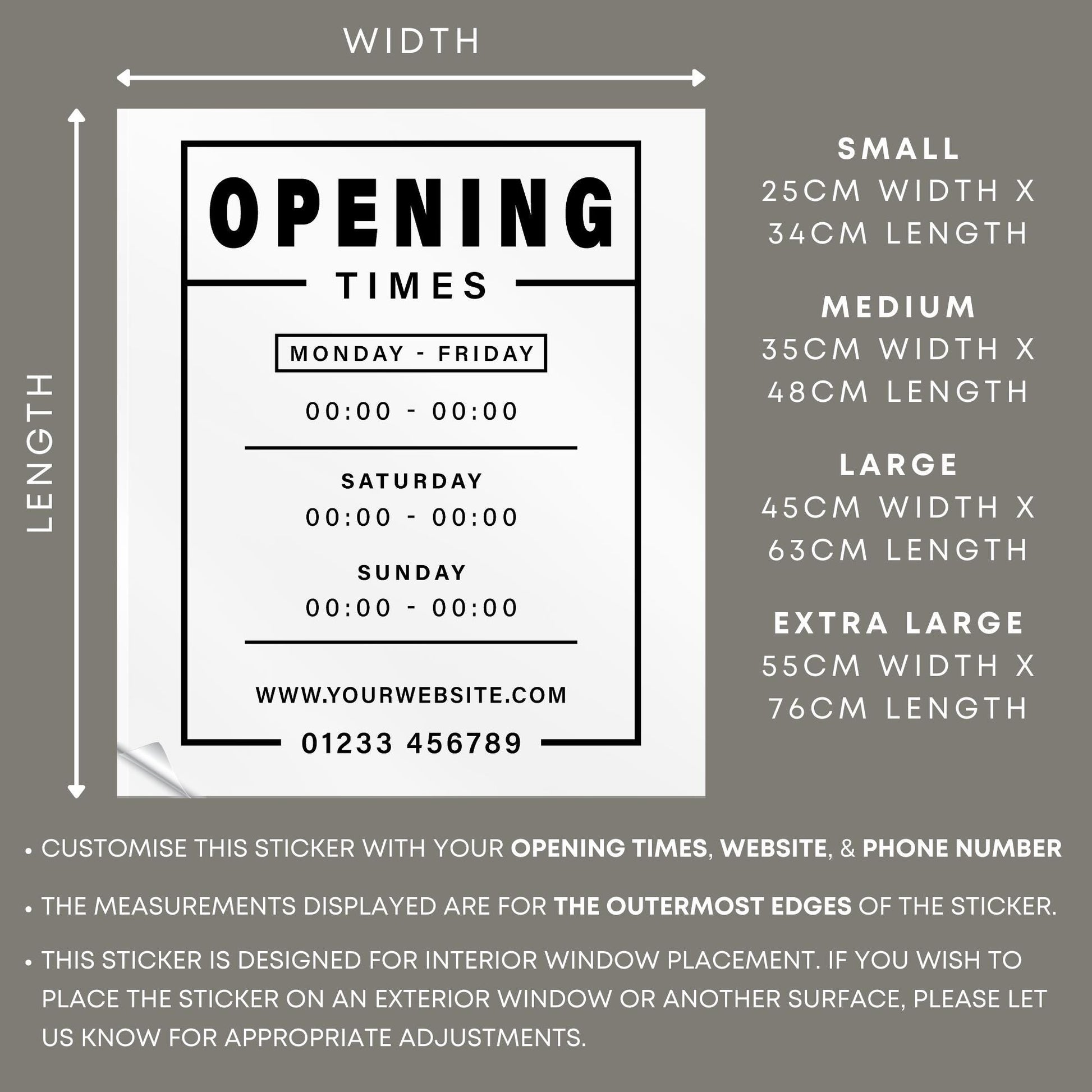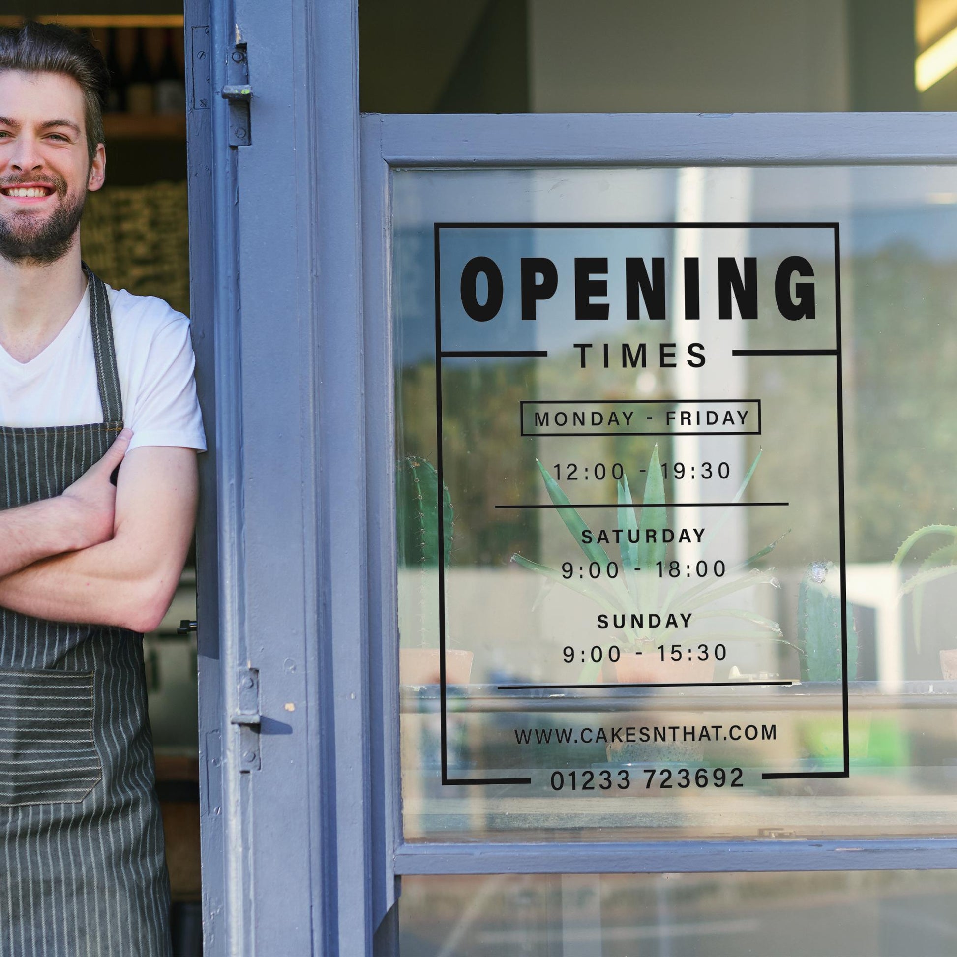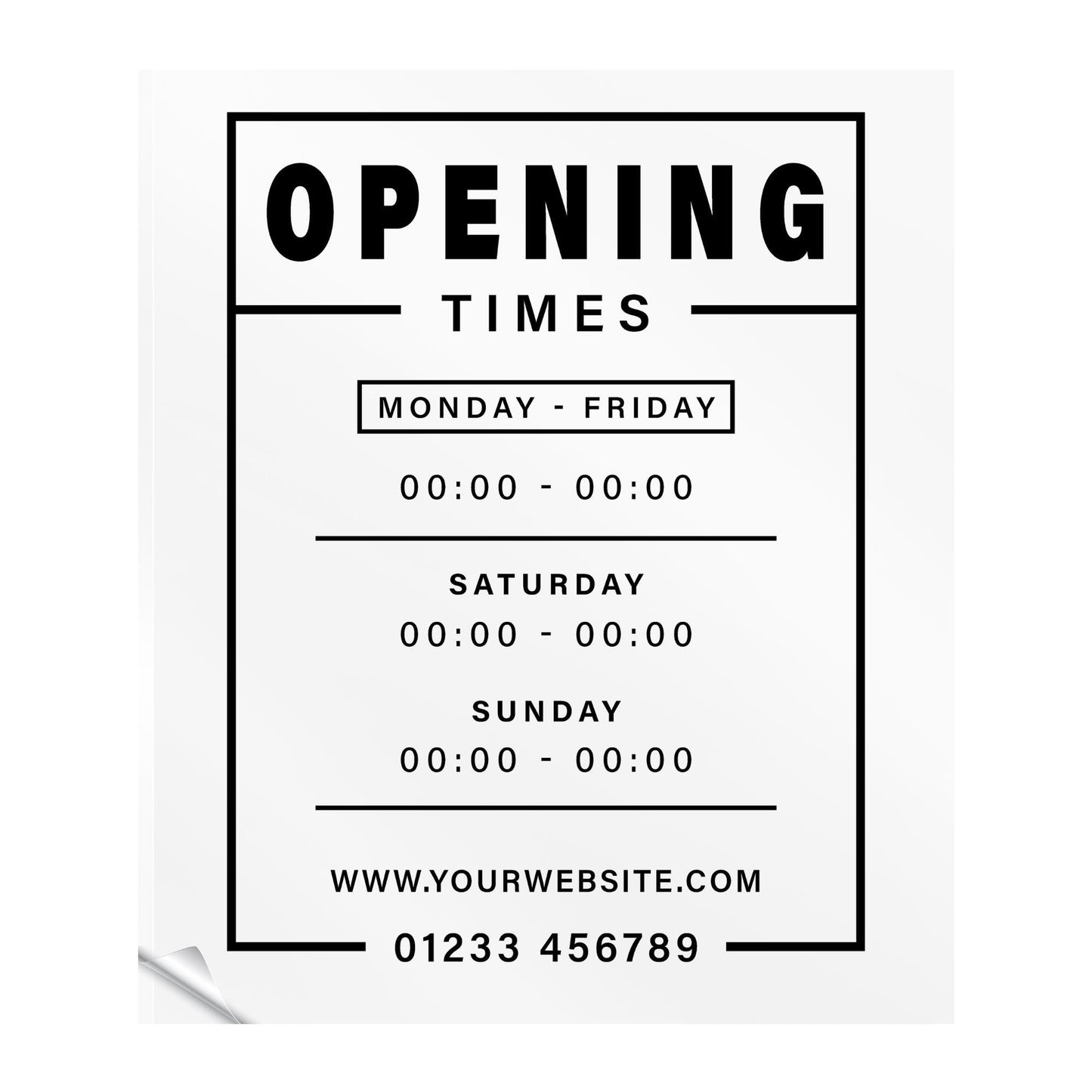 - Professional Appearance: Enhance your storefront with a sleek, stylish opening times sticker.