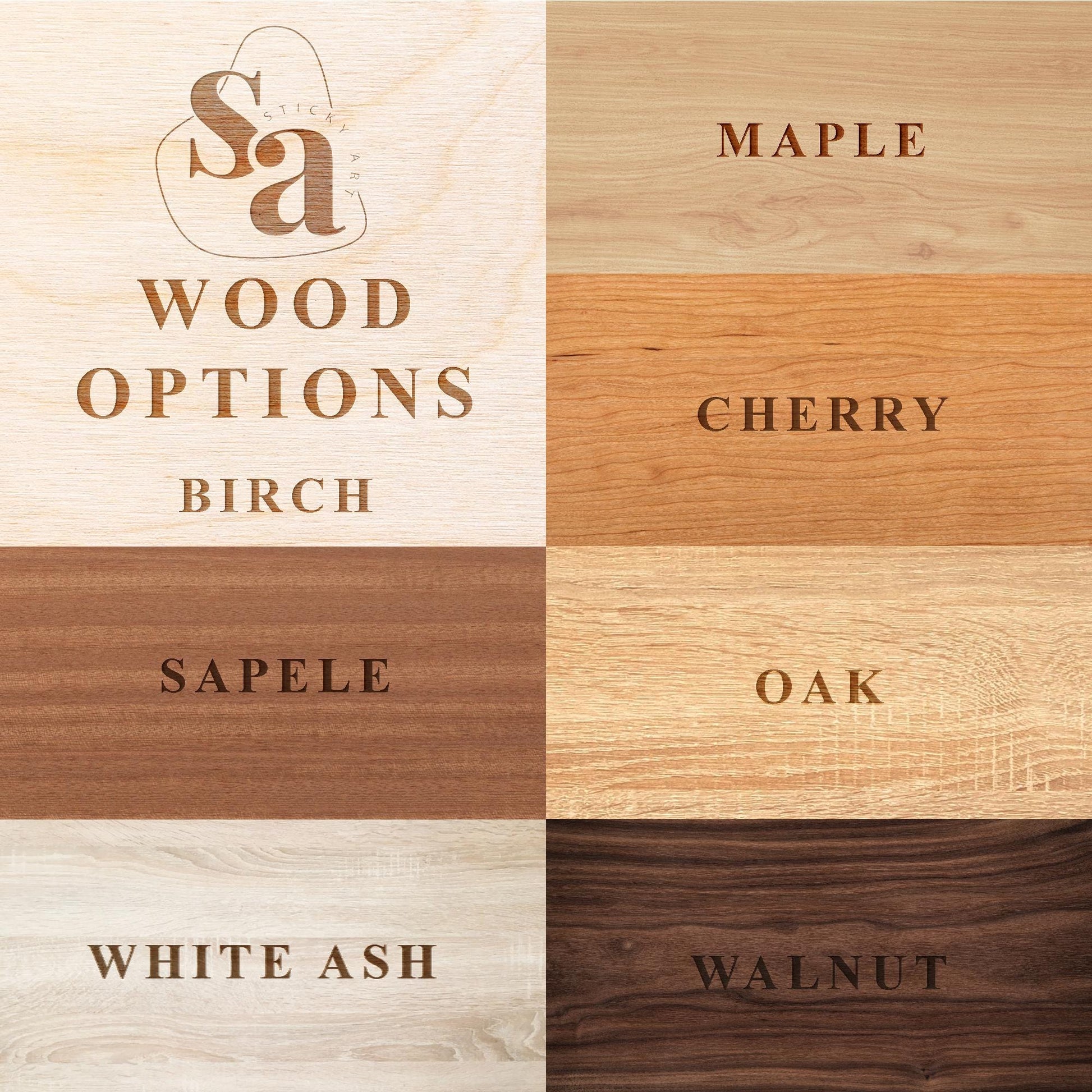 Choose from Birch (3mm) or premium 6mm woods: Maple, Cherry, Sapele, Oak, White Ash, or Walnut.