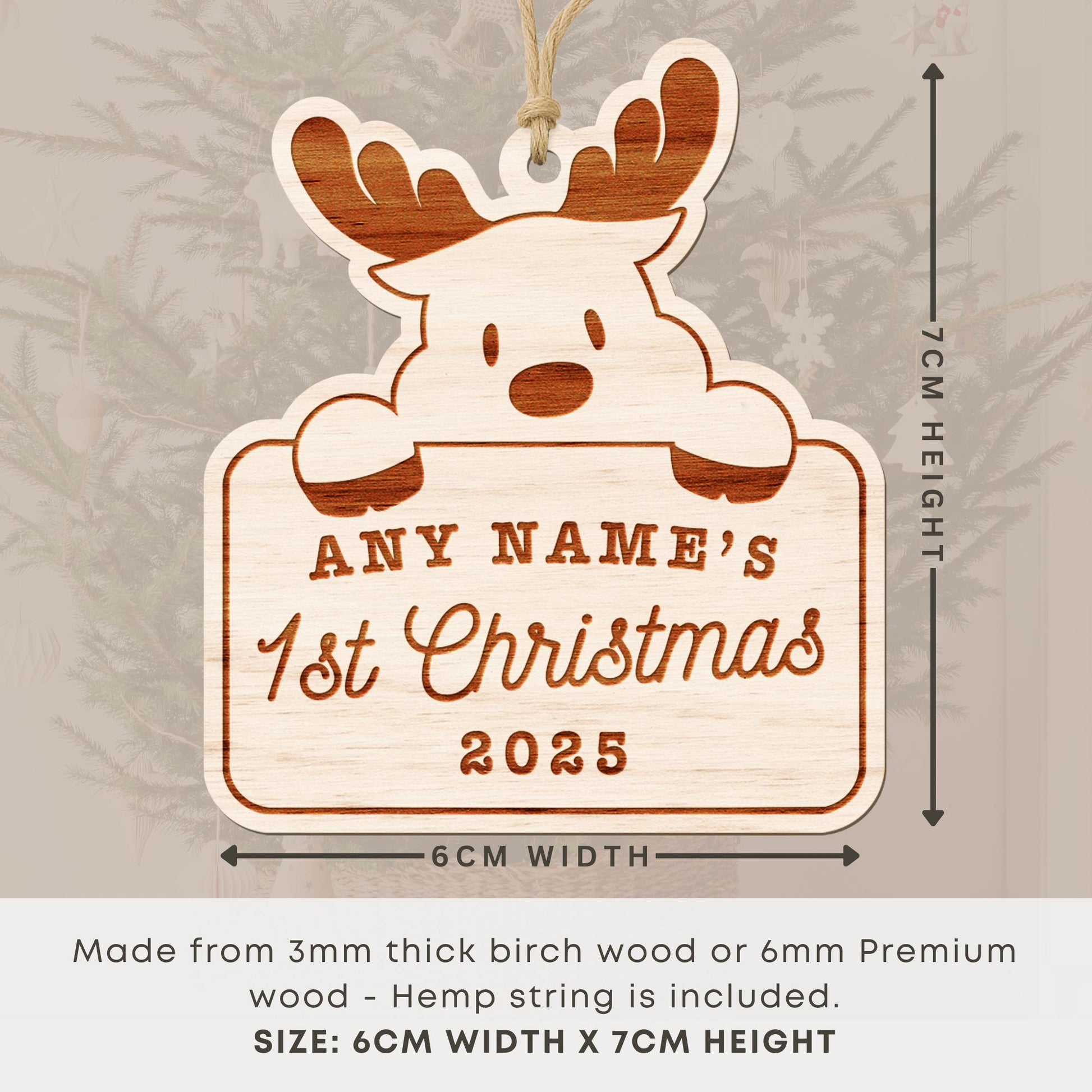Personalised Babys First Christmas Wooden Ornament Reindeer: Custom Name & Year Keepsake Xmas Decoration | Babys 1st Christmas Gift