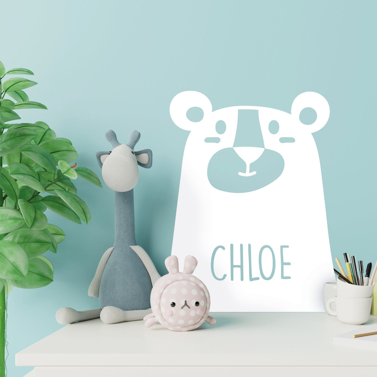Our beautiful personalised bear vinyl sticker is the perfect way to decorate your child‘s room. With a woodland forest theme, personalise this sticker with any name up to 8 characters and create an amazing cosy, playful and contemporary aesthetic.