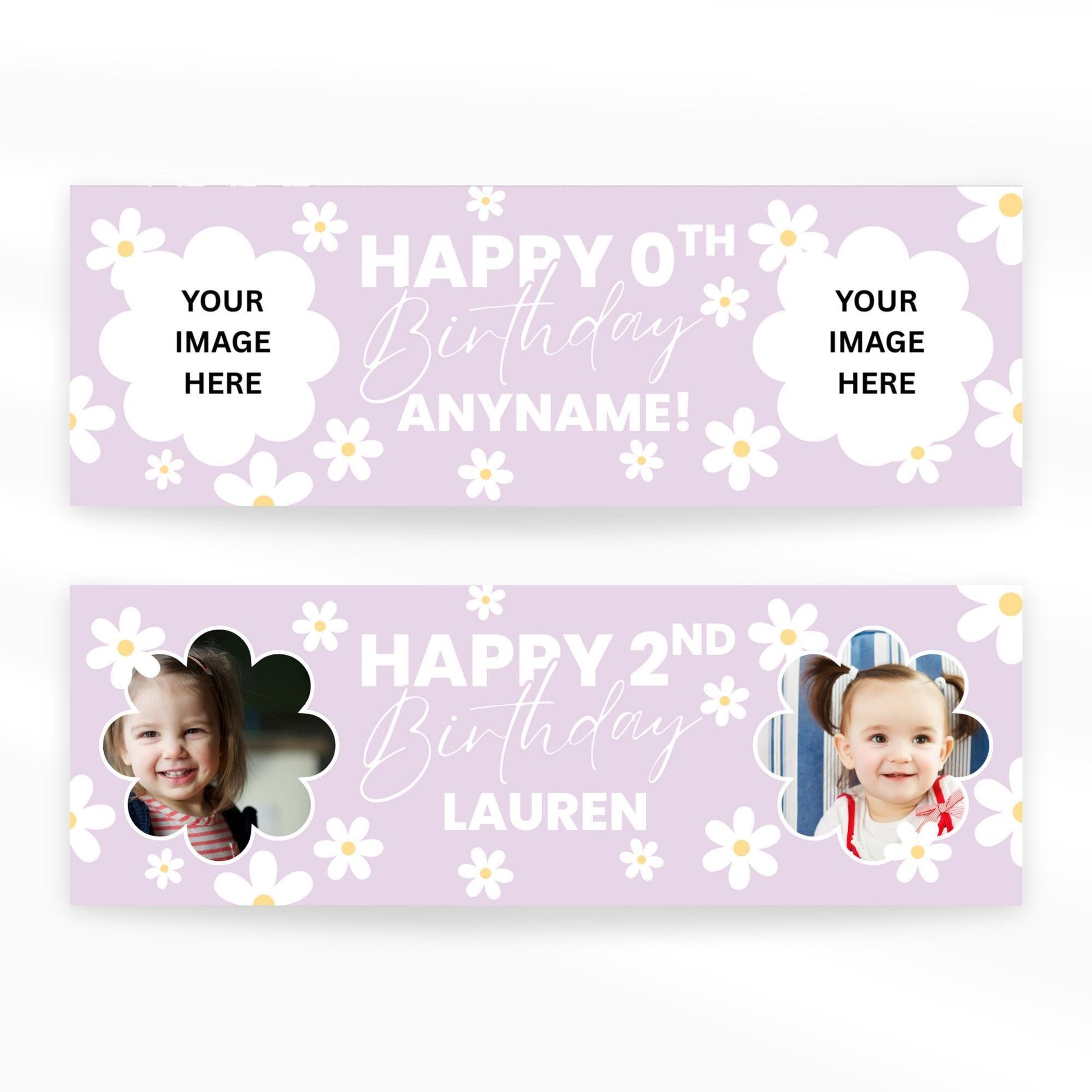 Say it with flowers and celebrate in style with this personalised daisy-themed birthday banner! Designed in soft lilac and white, this sweet and stylish party decoration features delicate daisy illustrations and a soft floral pattern perfect for spring birthdays, garden parties, or daisy-themed celebrations.