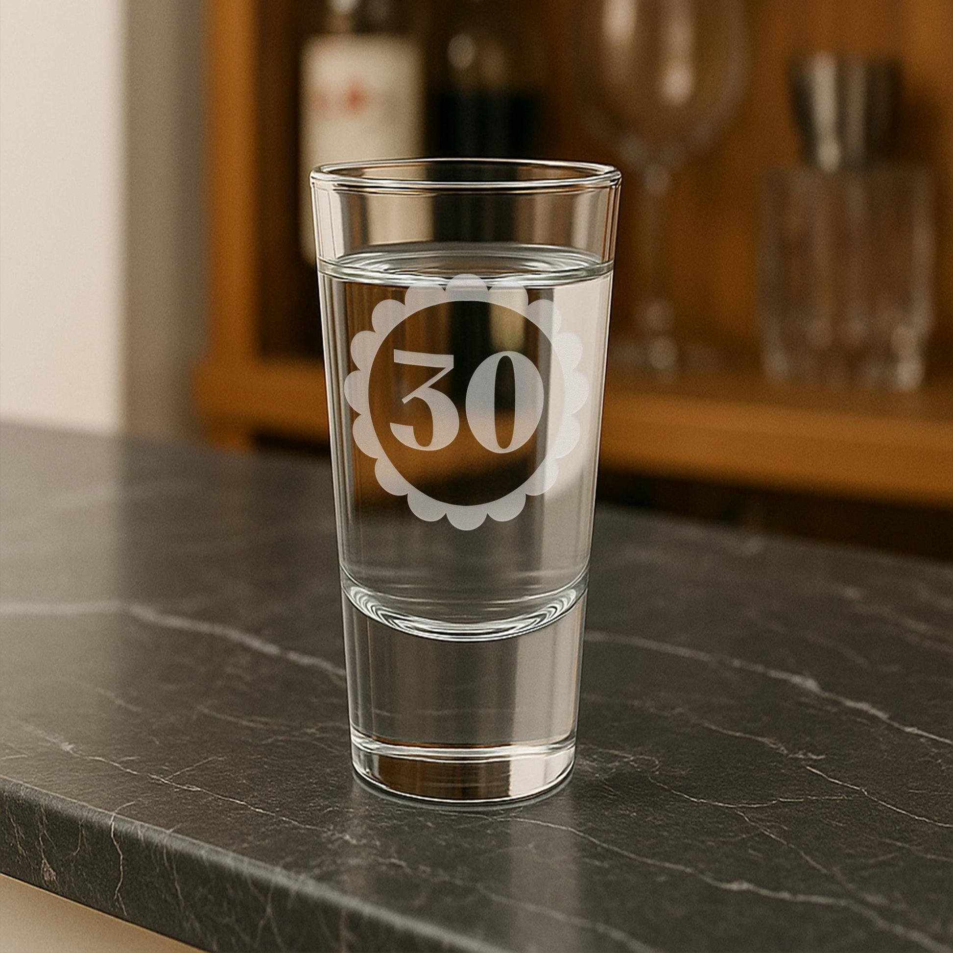 Celebrate a milestone in style with our custom engraved shot glass, designed with a bold petal frame and your chosen age at the centre. Whether its an 18th, 21st, 30th or any birthday worth toasting, this thoughtful keepsake makes the perfect gift for party lovers, shot glass collectors, or anyone marking a special occasion.