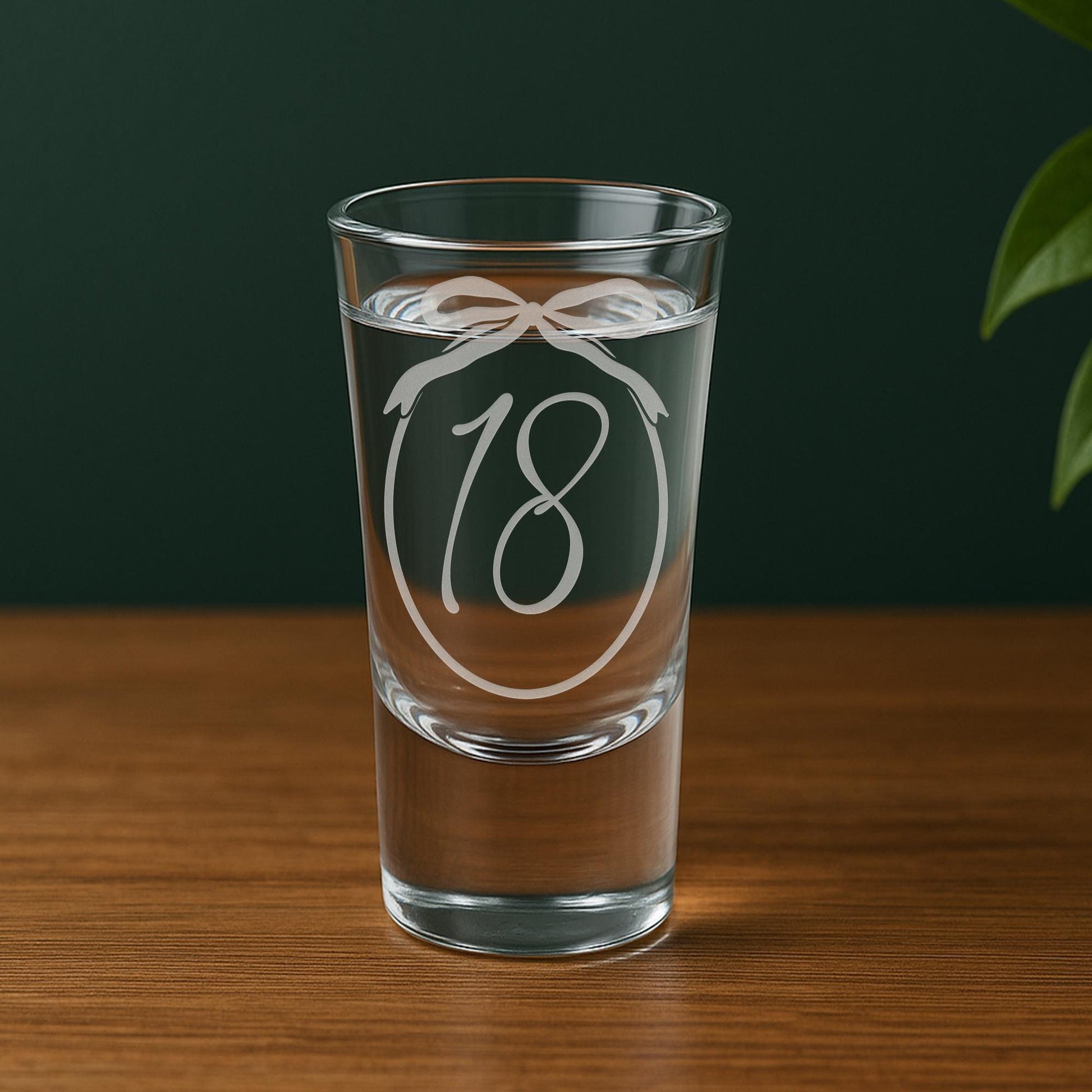 Personalised Birthday Shot Glass | Custom Age - Ribbon Bow Frame | Milestone Birthday Gift | Custom Engraved Keepsake for Her 18th