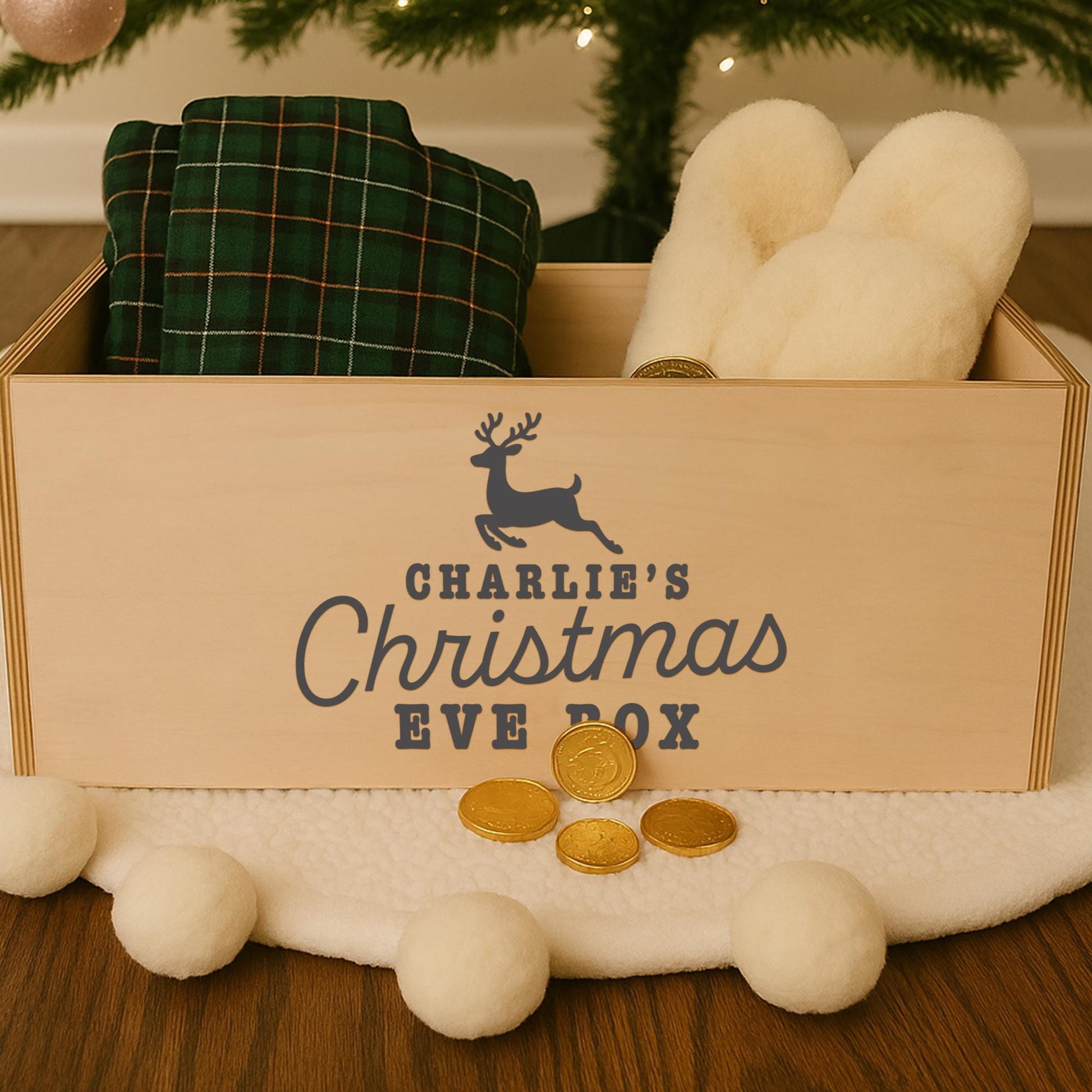 Personalised Christmas Eve Box Vinyl Sticker Classic Reindeer Design | Custom Name Decal | Christmas Eve Gift Box Label | Xmas Tradition