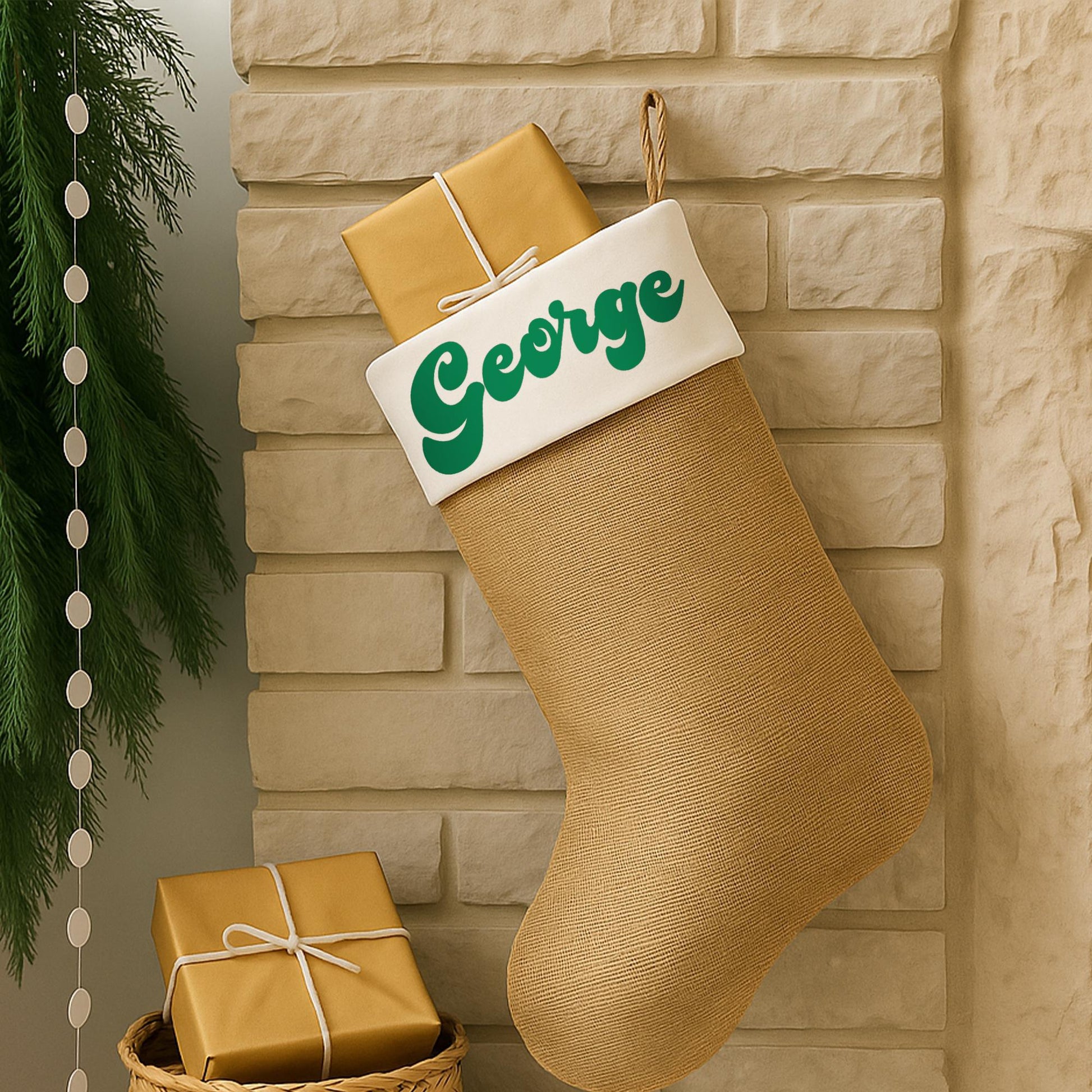 Add a touch of festive fun to your Christmas décor with our retro-style personalised iron-on name stickers. Designed in a bold, playful script font, these high-quality vinyl decals are perfect for customising stockings, Santa sacks, pyjamas, or tote bags. Each name is cut from durable heat transfer vinyl — easy to apply with an iron or heat press, giving a smooth, long-lasting finish that looks professionally made.