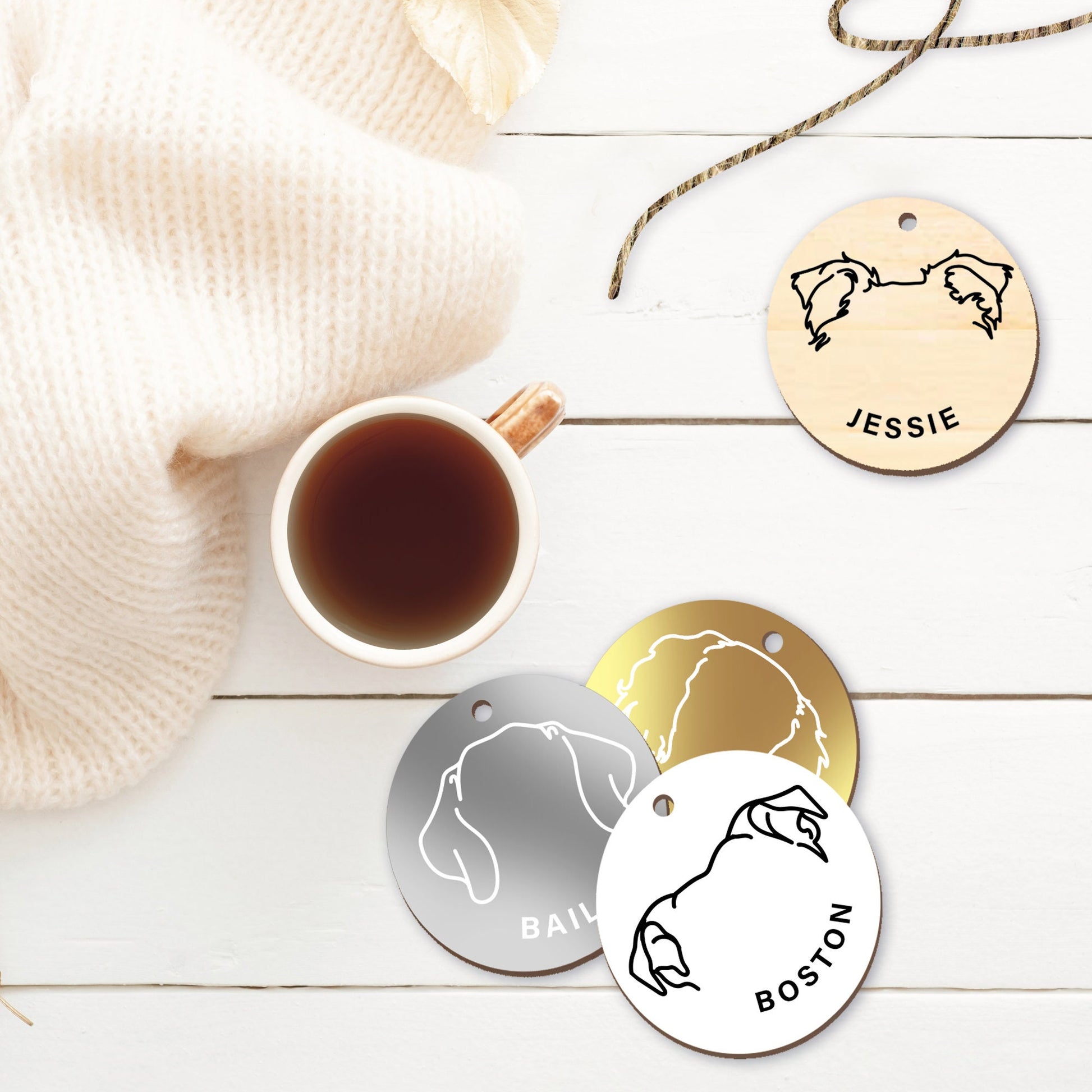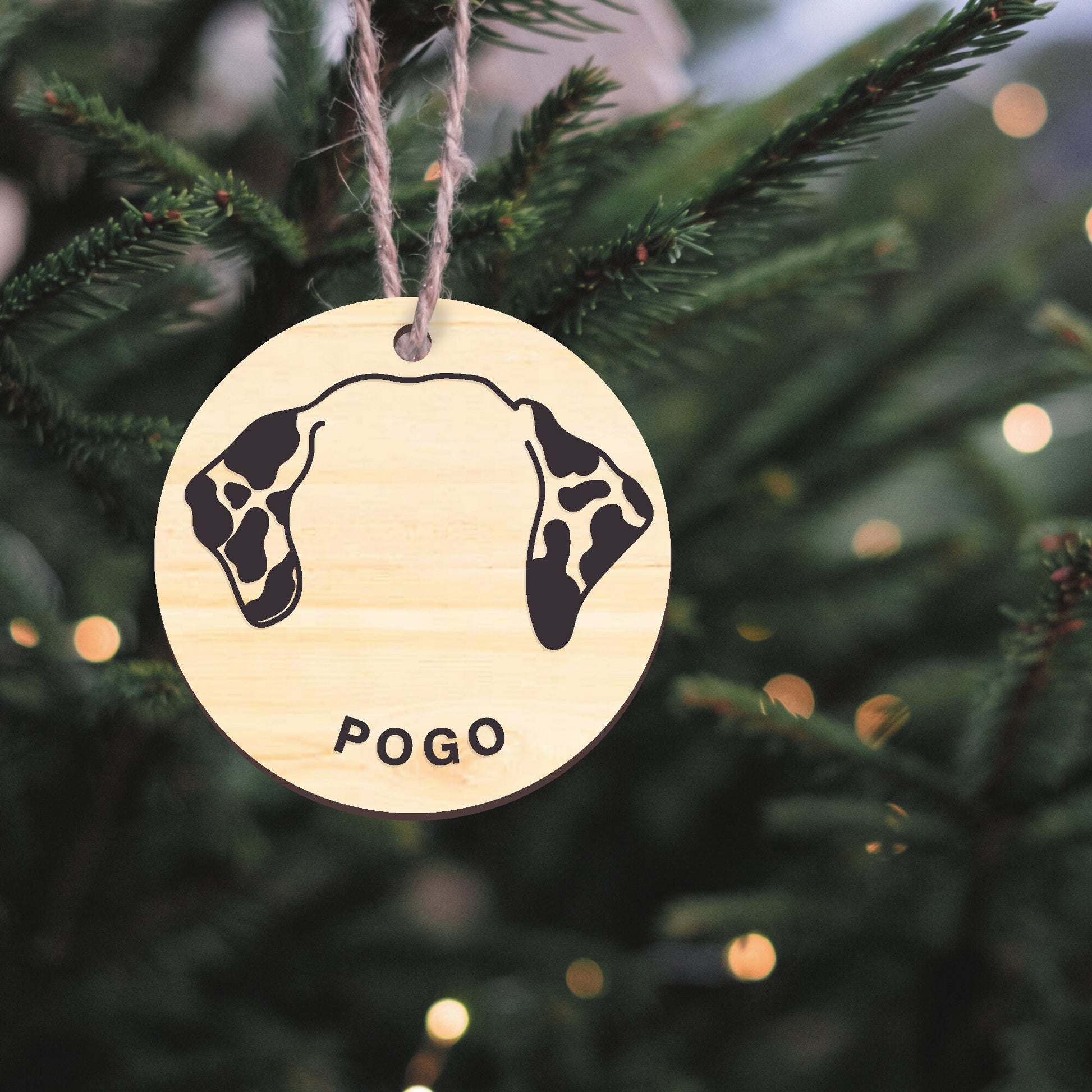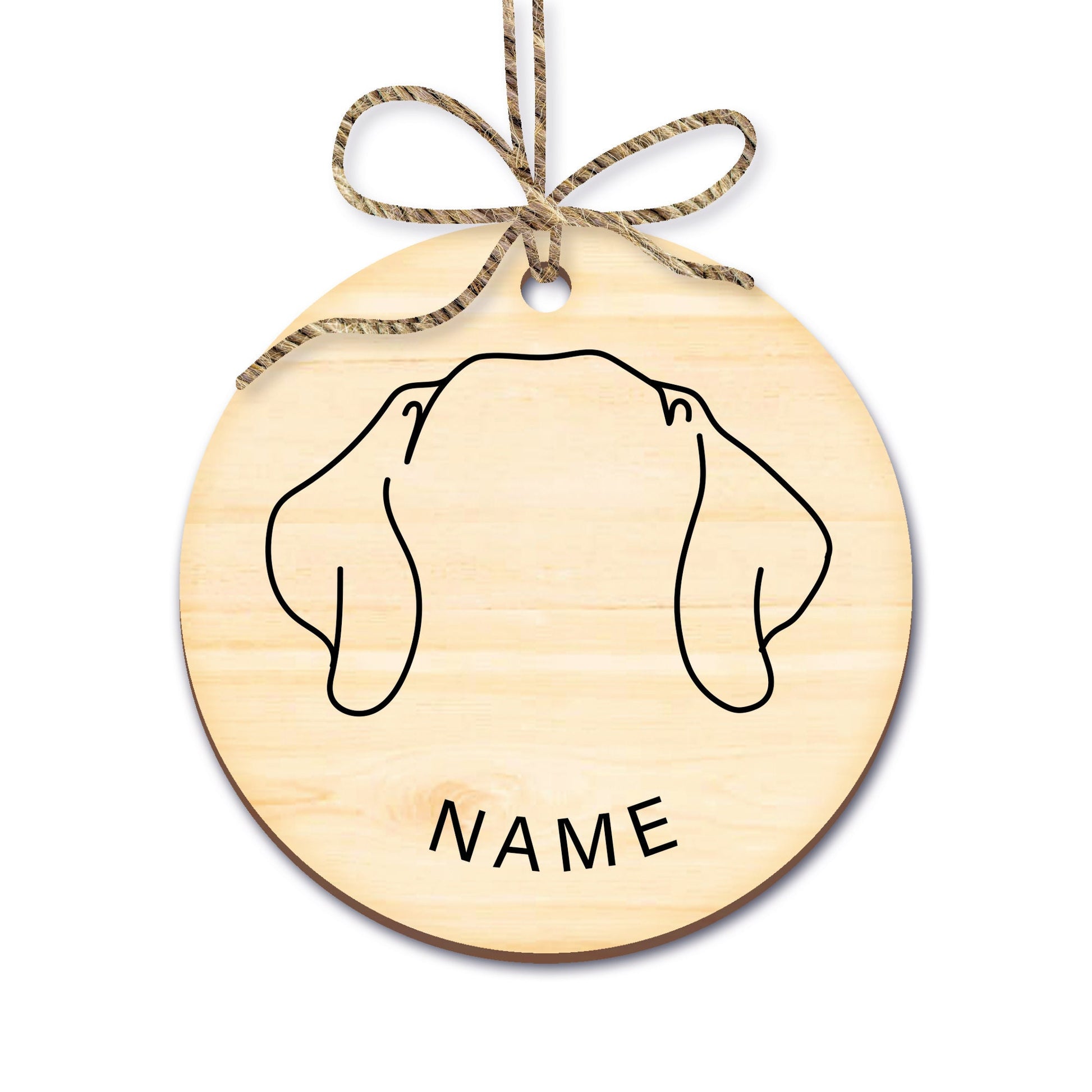 Personalised Dog Ear Ornament - Personalised Dog Line Art Christmas Holiday Decor, Wooden Pet Xmas Bauble, Christmas Tree Pet Puppy Ornament