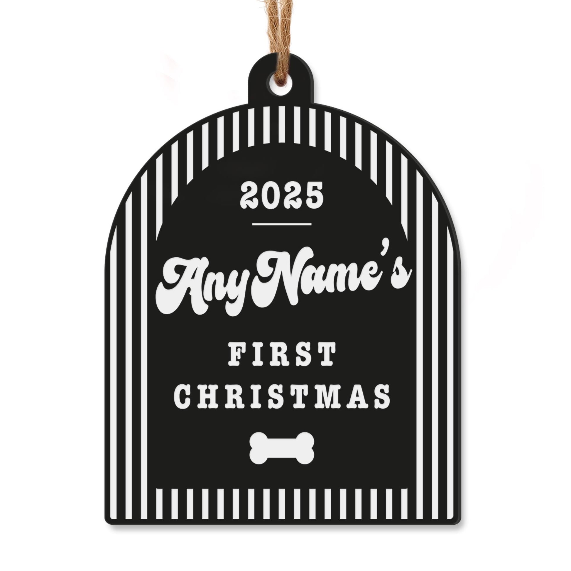 Personalised Dog First Christmas Bauble Striped Arch & Bone: Custom Pet Ornament with Name and Year | Puppys First Xmas Keepsake Gift