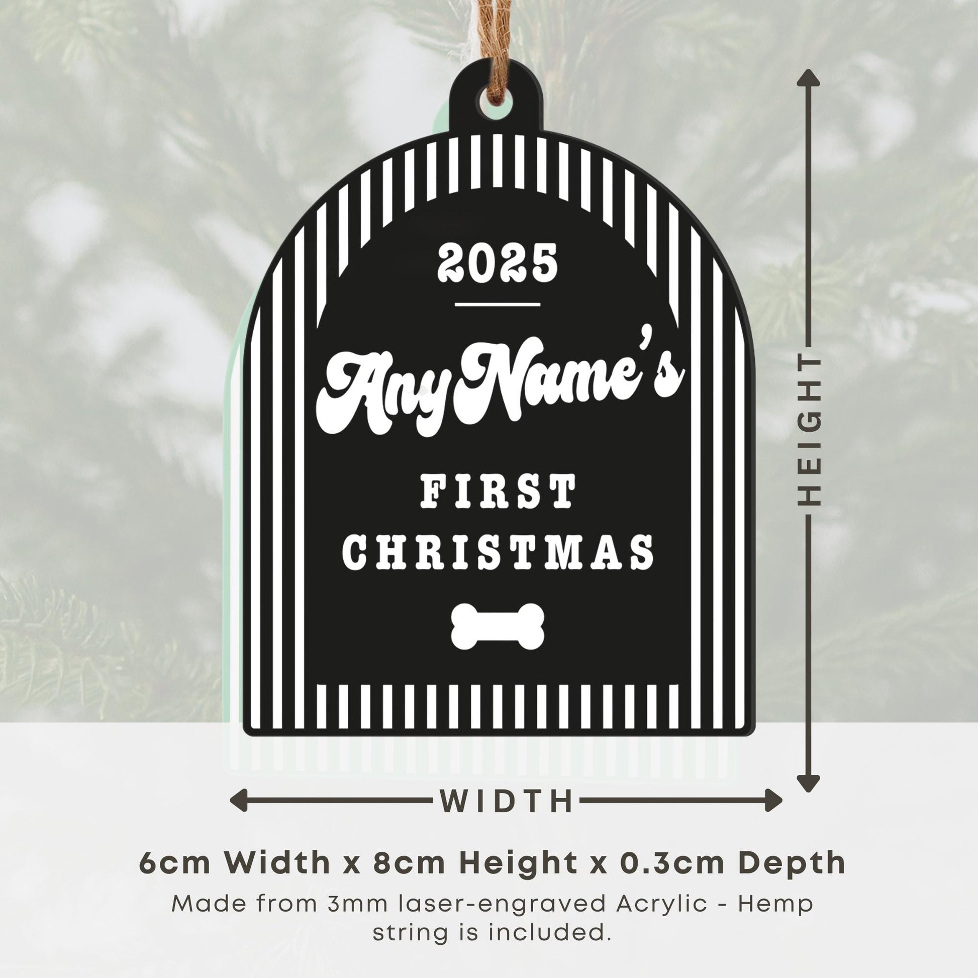 • Personalised Pet Ornament: Add your dog’s name (up to 8 characters) and any year to create a one-of-a-kind festive keepsake.