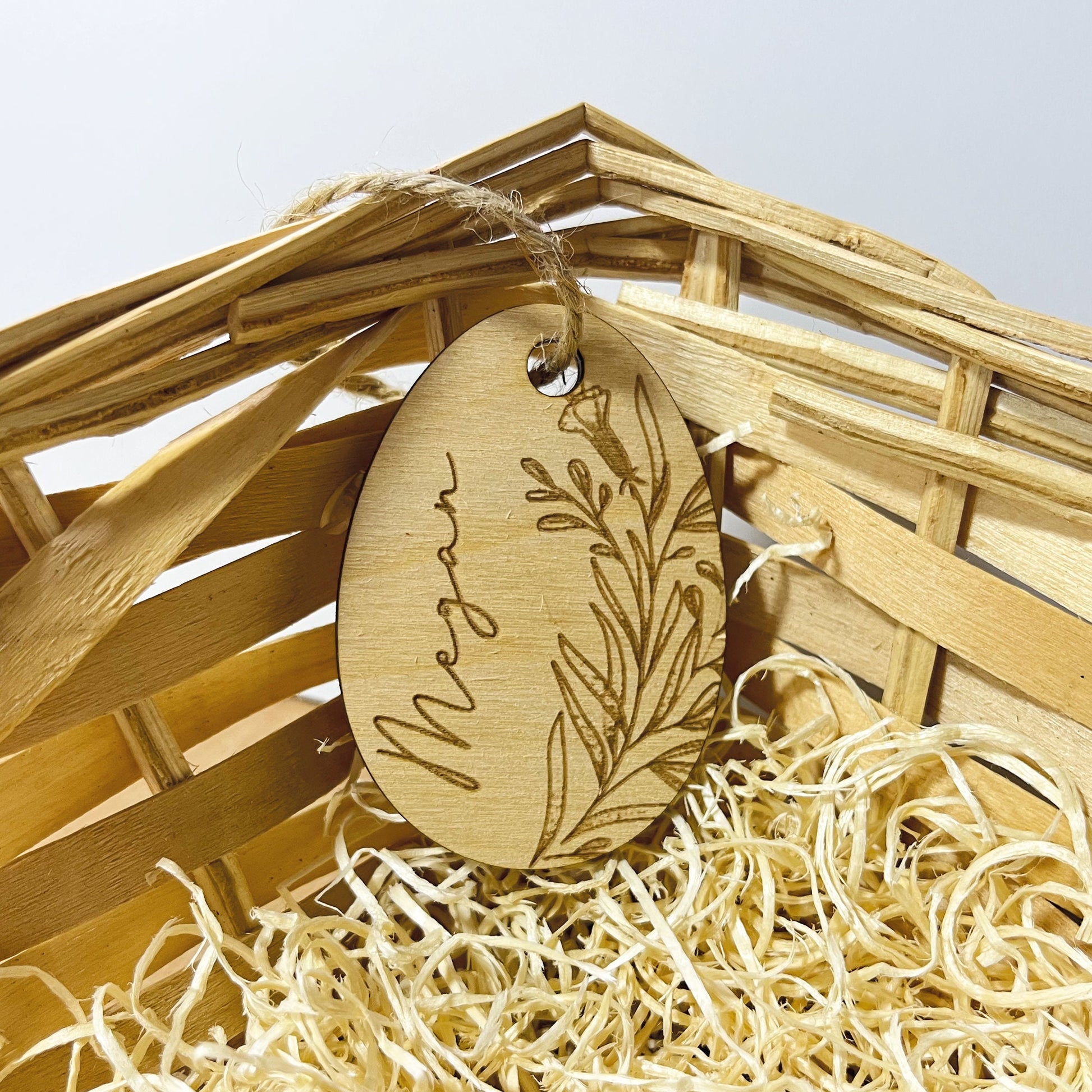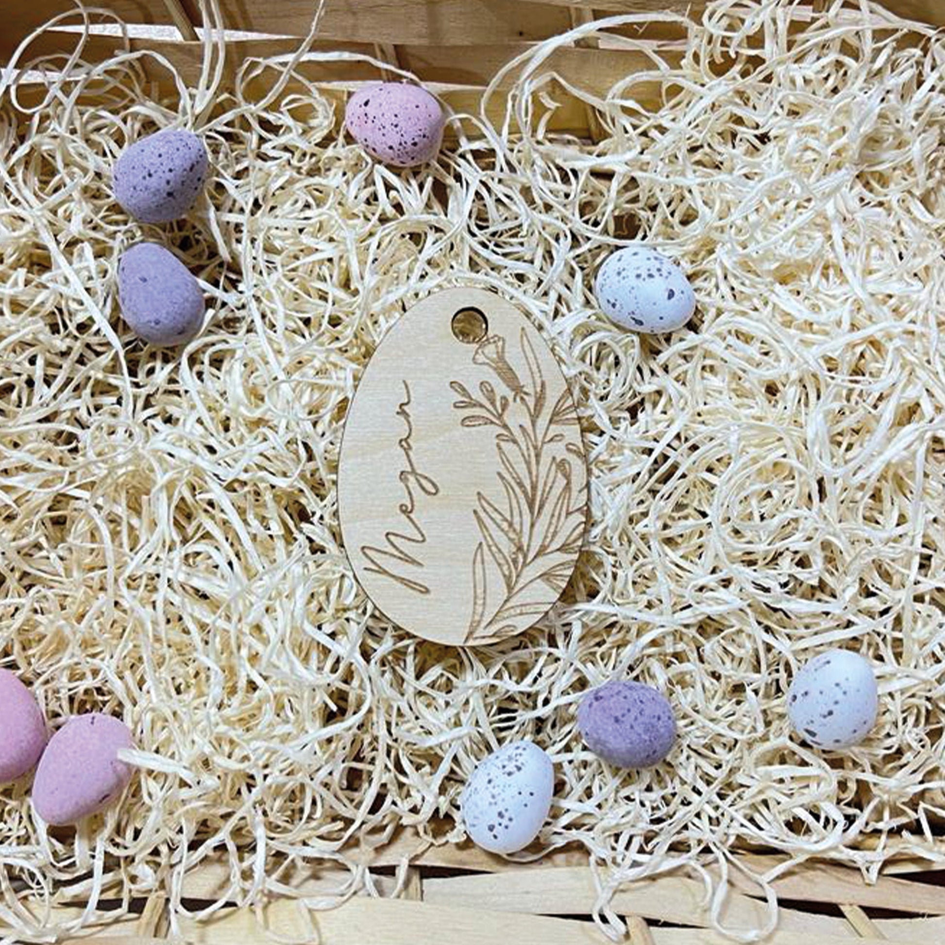 Wooden Easter tag that are a perfect personalisation to your Easter Hamper / Basket.