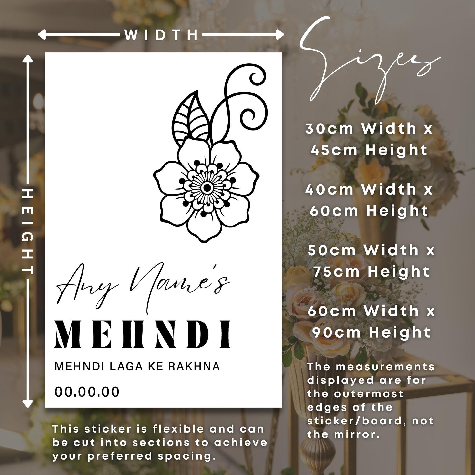 Personalised Floral Mehndi Vinyl Sticker “Mehndi Laga Ke Rakhna Mirror or Welcome Sign Decal, Mehndi Party Decor, Henna Design