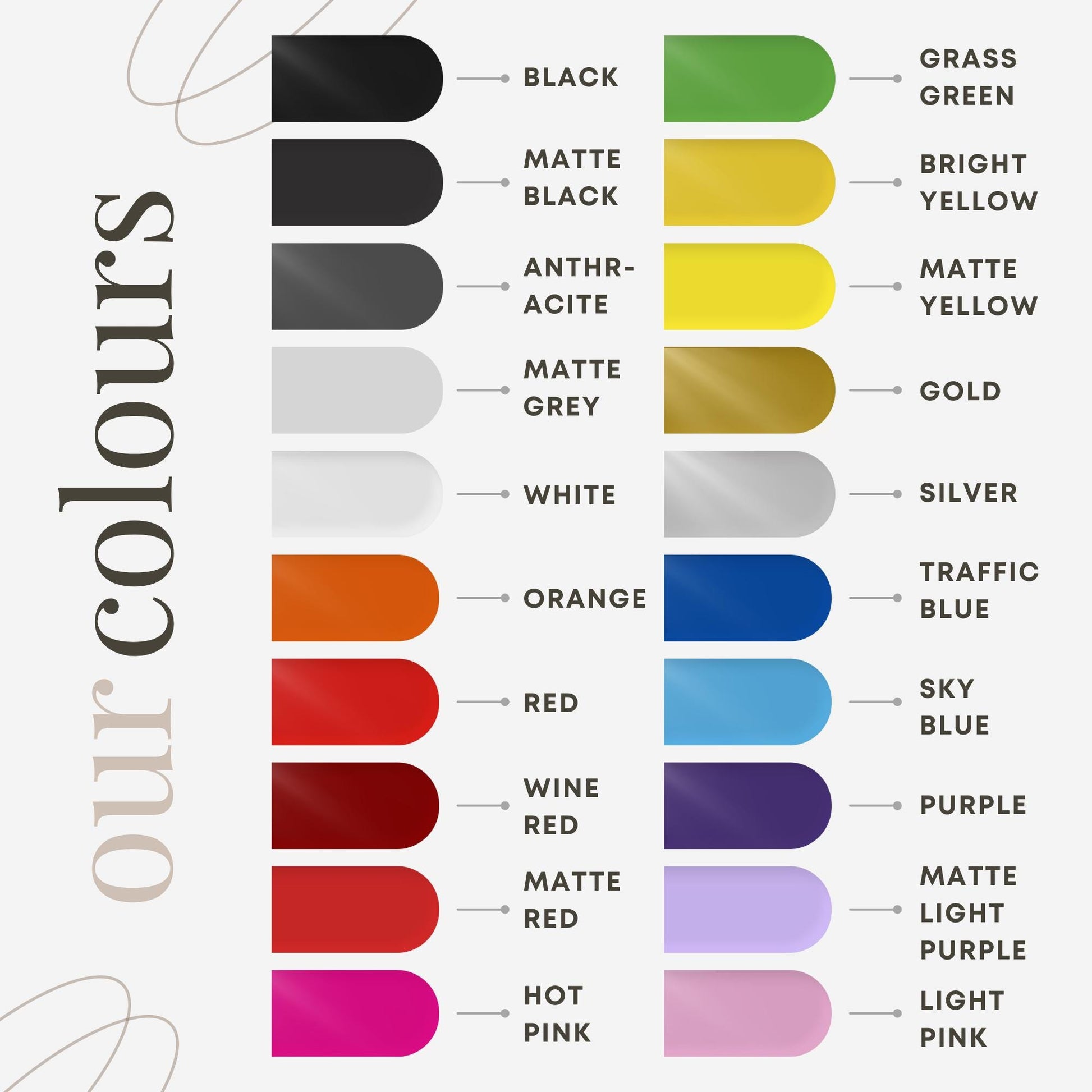 - Elegant shades like Matte Black, Wine Red, Anthracite, and more.