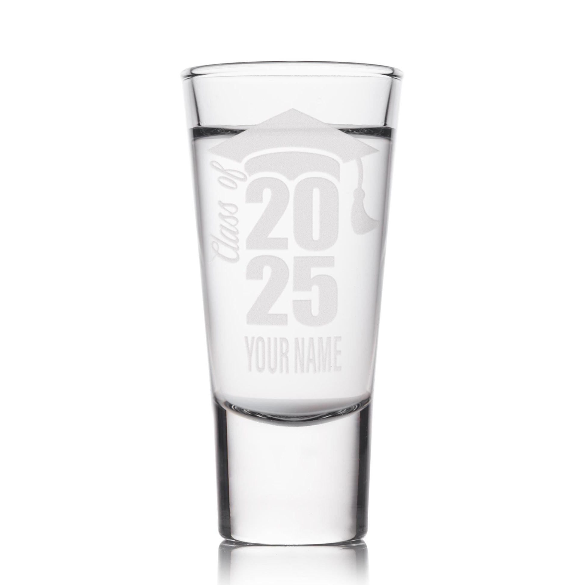 Personalised Graduation Shot Glass | “Class of [YEAR] Name & Grad Cap | Custom Gift for Graduates | Congratulations Gift for Him or Her