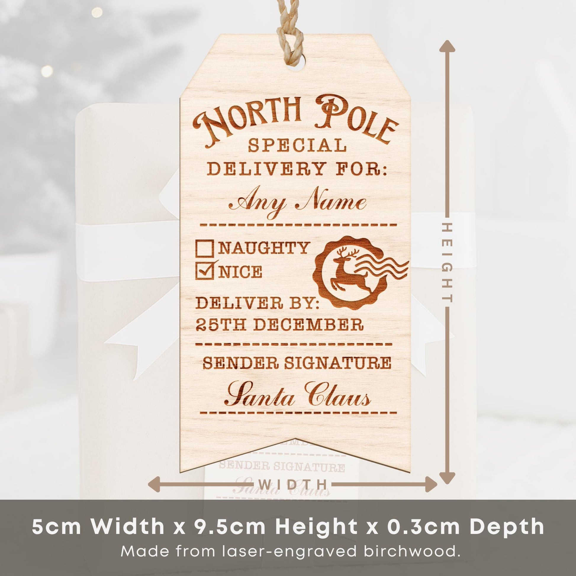 Personalised North Pole Special Delivery Wooden Gift Tag Custom Name Gift Tag Christmas Present Tag from Santa Festive Keepsake