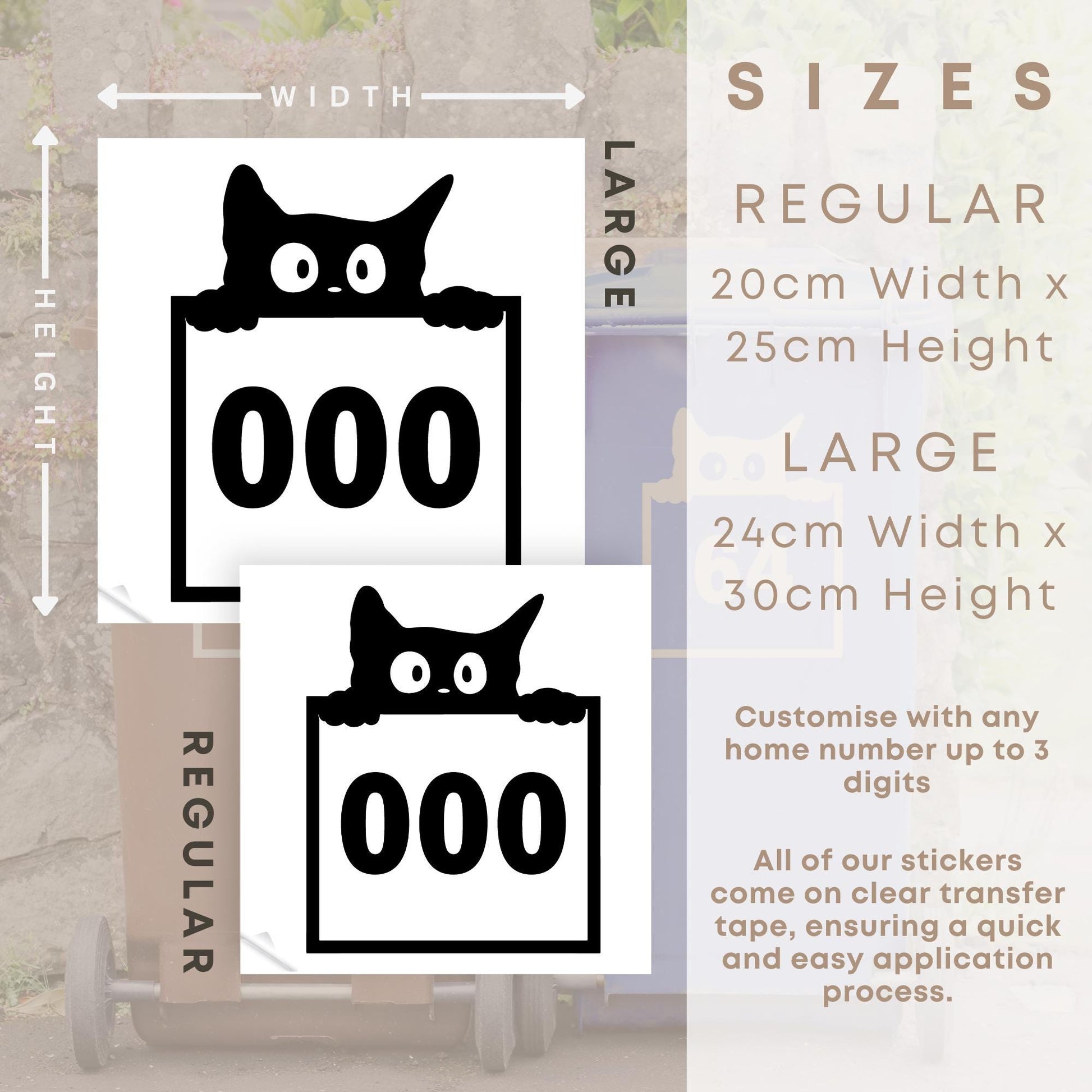 Personalised Peeking Cat Bin Sticker: Custom Wheelie Bin Decal with House Number - Cute Outdoor Decor, Funny Cat Sticker for Dustbin