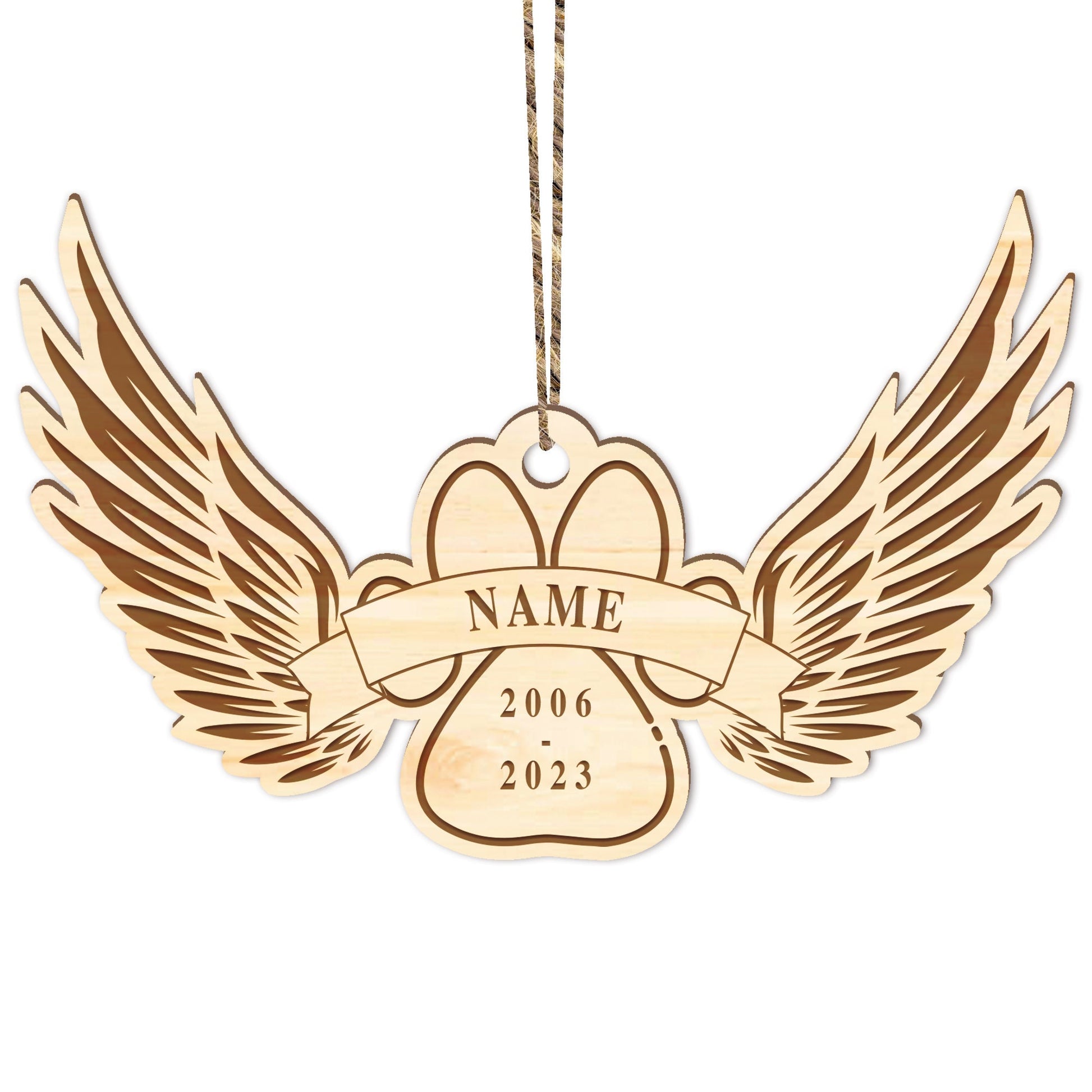 Personalised Pet Memorial Christmas Ornament - In Memory Of Custom Pet Name, Wooden Xmas Bauble Decoration, Dog or Cat Christmas Tree Decor