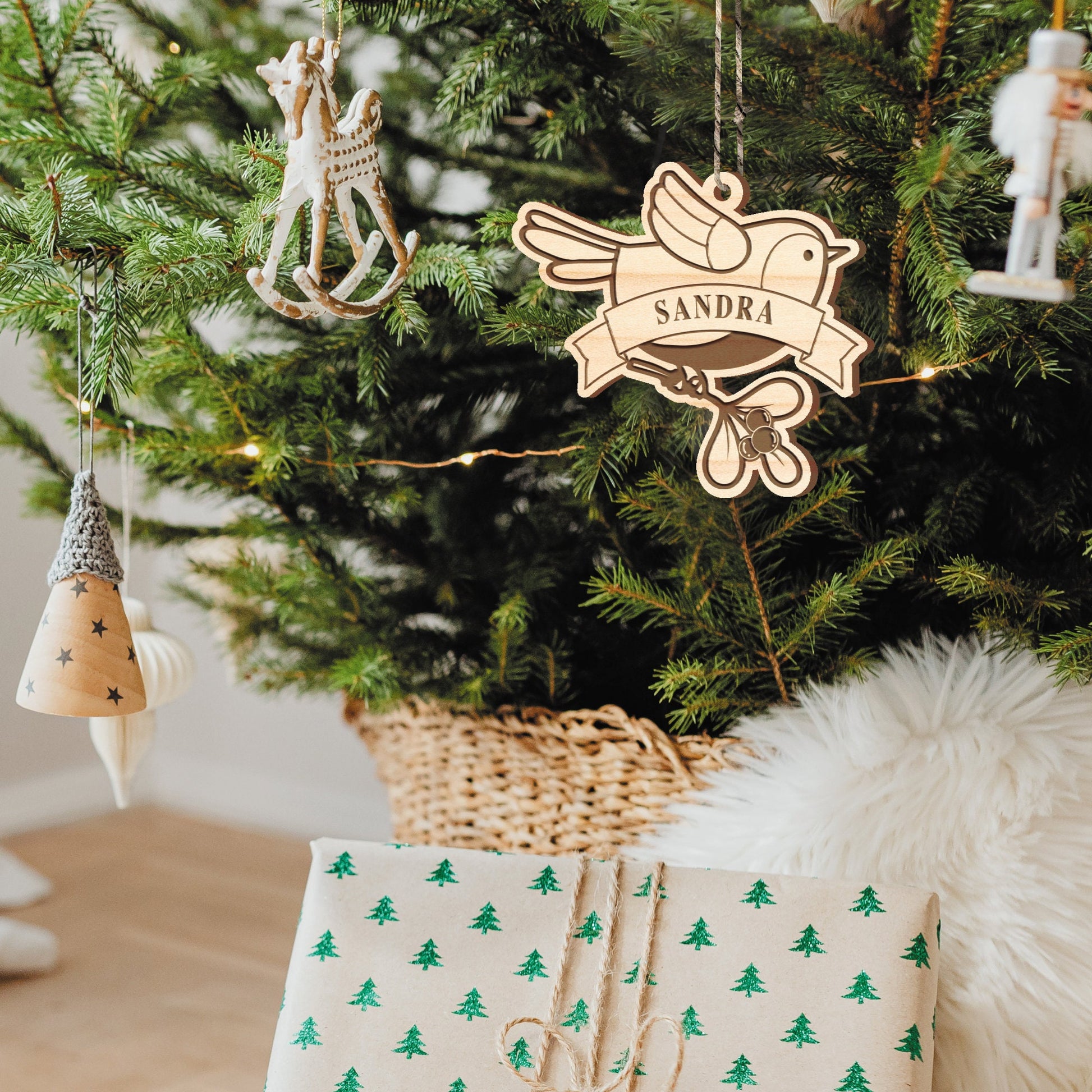 Beautifully engraved, personalised wooden Christmas tree ornament. The perfect thoughtful keepsake/memorial bauble for Christmas. We offer a range of woods to match most tree aesthetics. Whether you‘re going for rustic and boho or Sleek and modern, we‘ve got you covered!