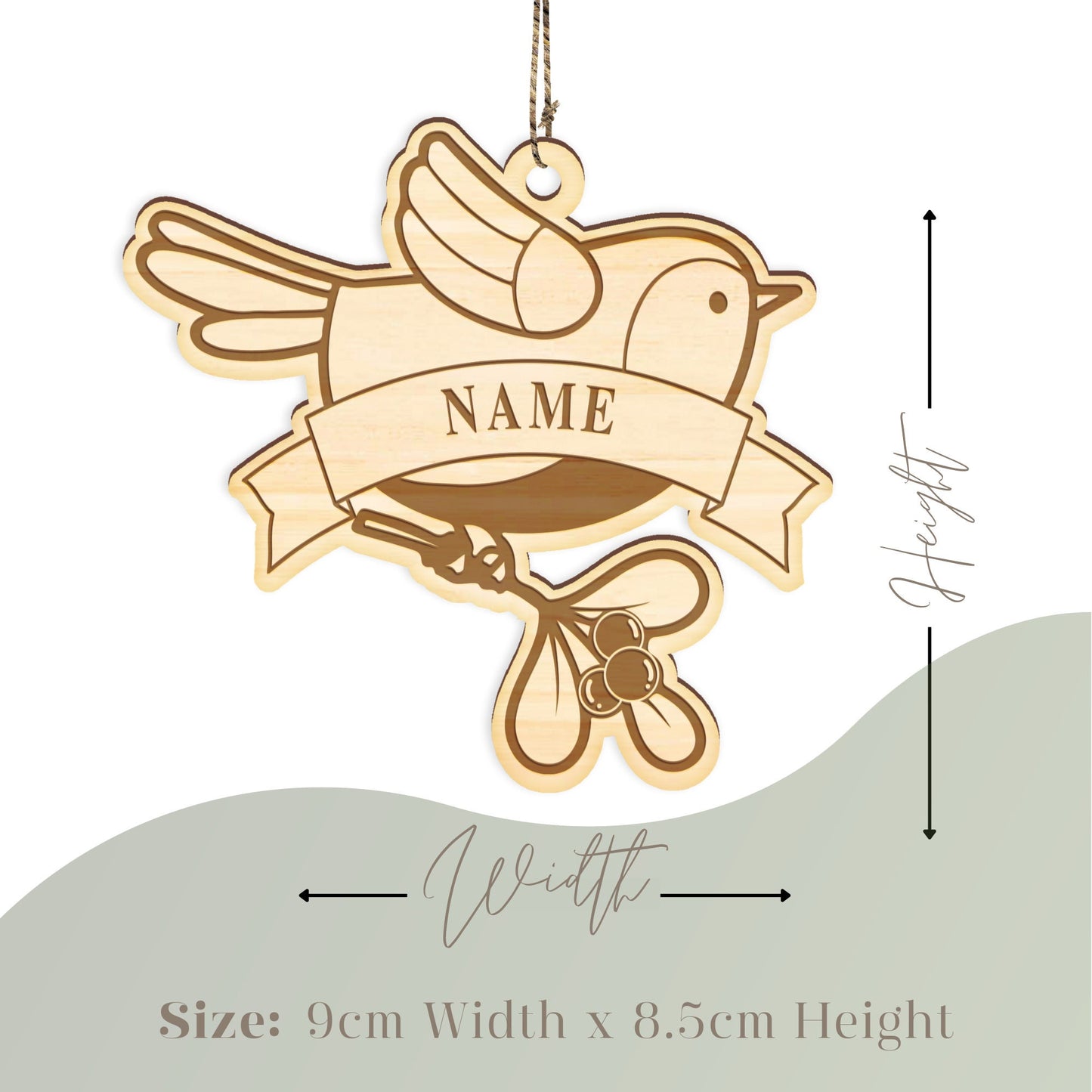 Personalised Robin Christmas Ornament - Custom Name, Rustic Xmas Home Decor, Wooden Memorial Robin Bauble, Hanging Christmas Tree Decoration