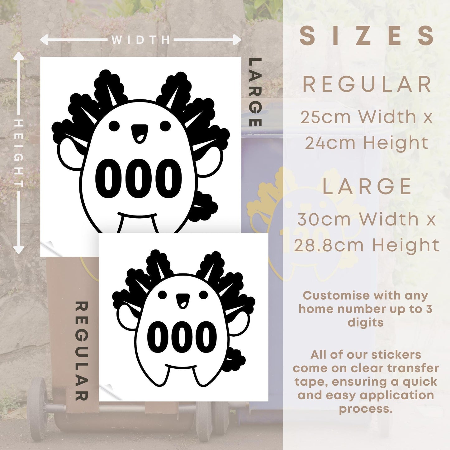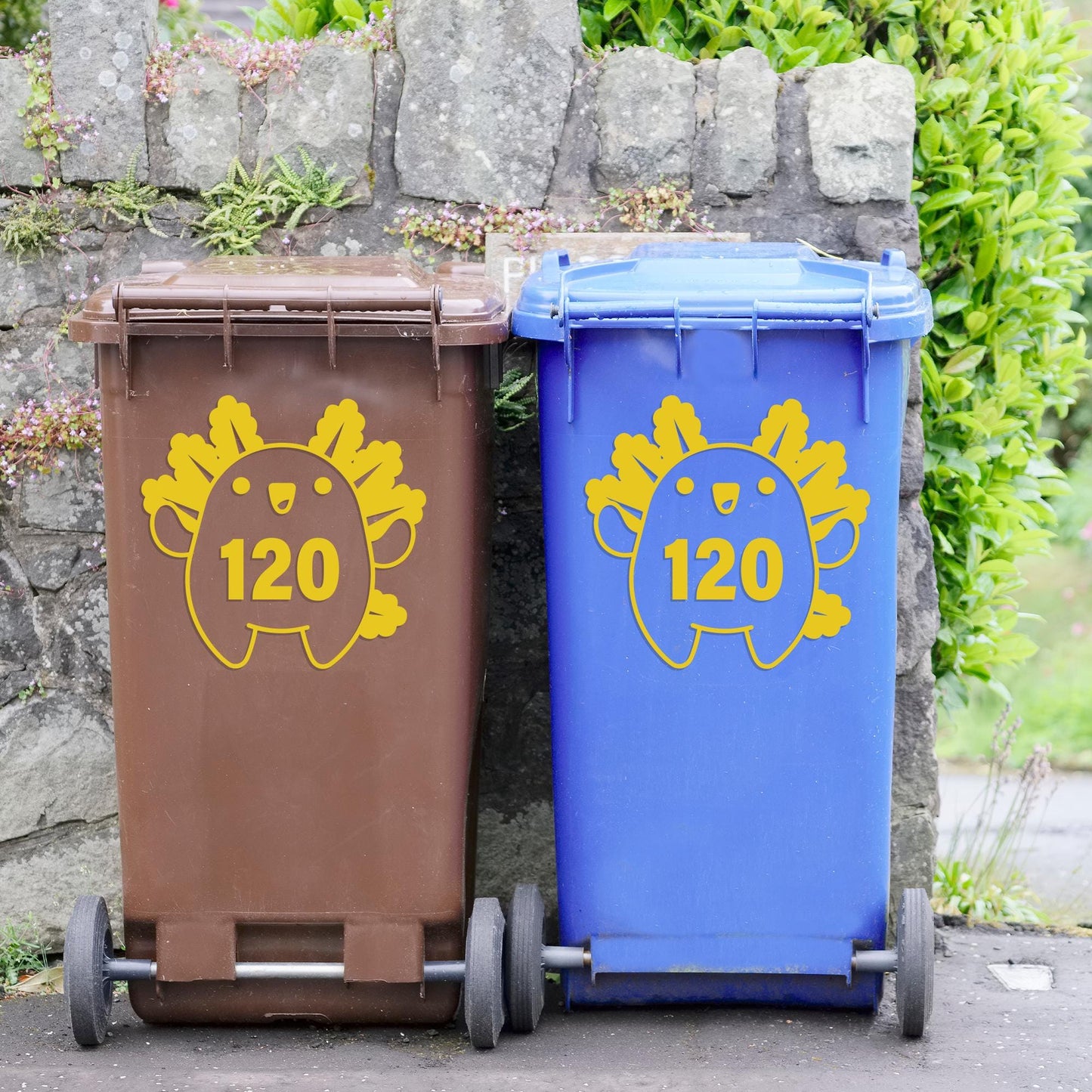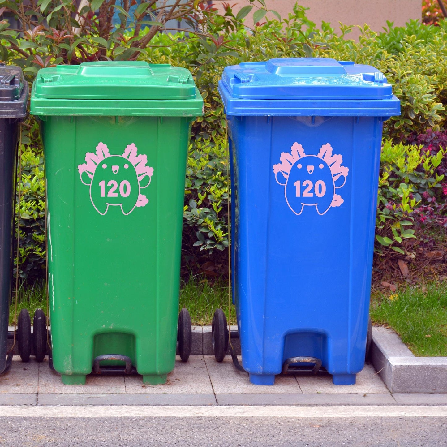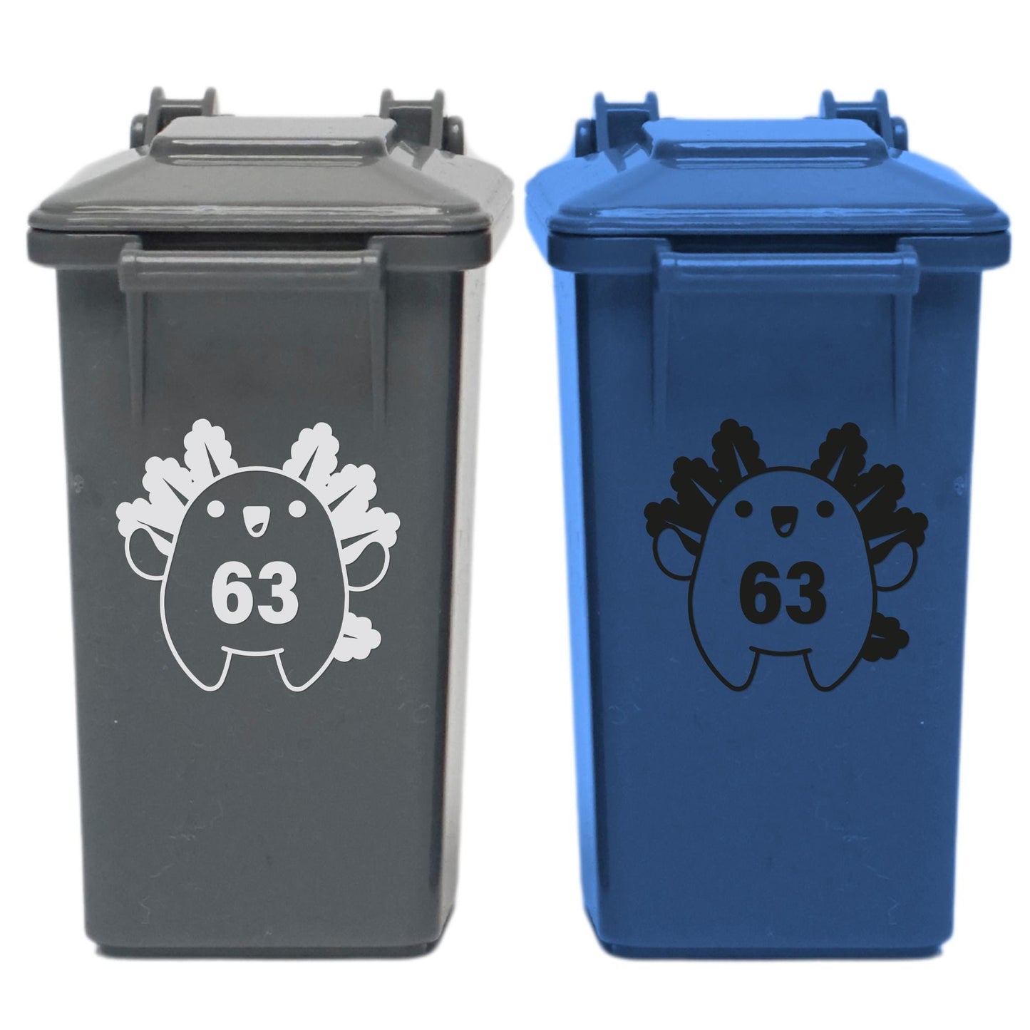 Add a splash of fun to your wheelie bins with this adorable Axolotl Bin Sticker, featuring a cute round axolotl design and your custom house number. Perfect for adding a personal touch and making your bins easy to identify!