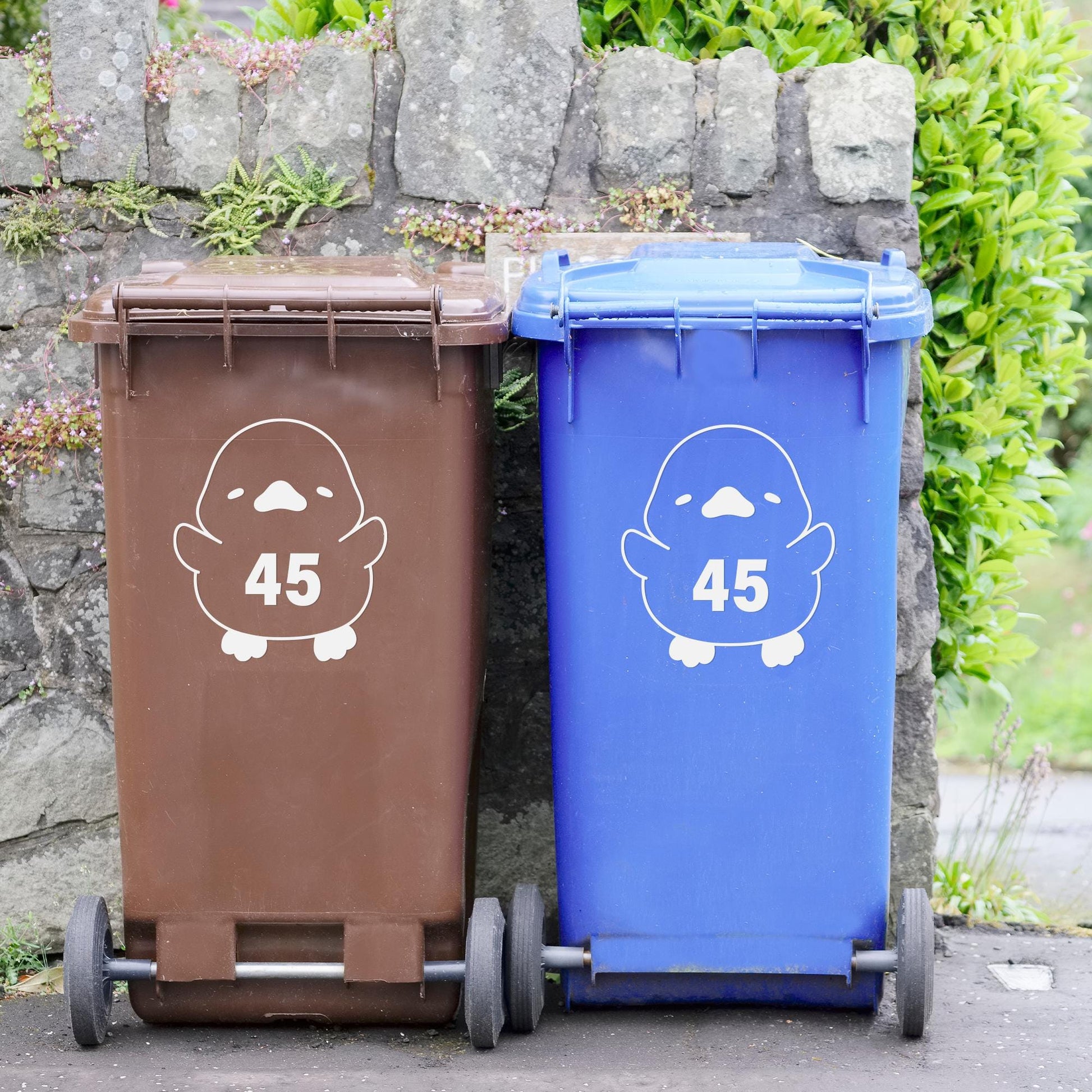 Personalised Round Duck Bin Sticker: Custom Wheelie Bin Decal with House Number - Cute Outdoor Decor, Funny Duck Sticker for Dustbin