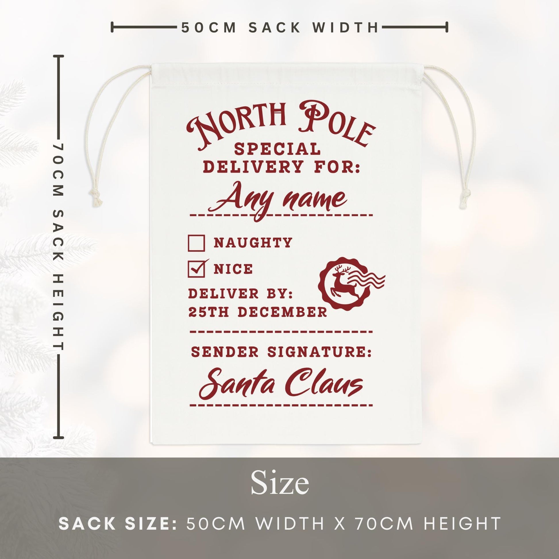 Personalised Special Delivery Stamp Santa Sack Custom North Pole Post Christmas Gift Bag