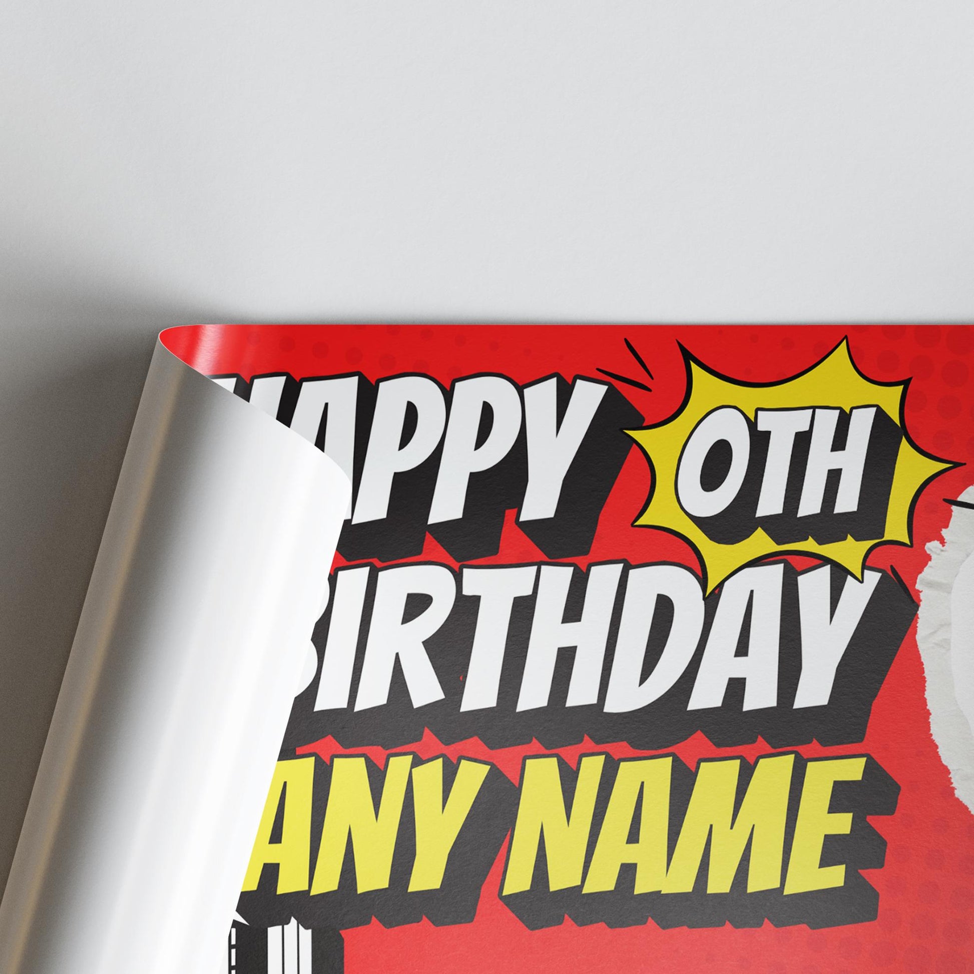 Personalised Superhero Birthday Banner with Photo Custom Party Decoration for Kids, Red & Yellow Comic Style, Birthday Banner for Boys