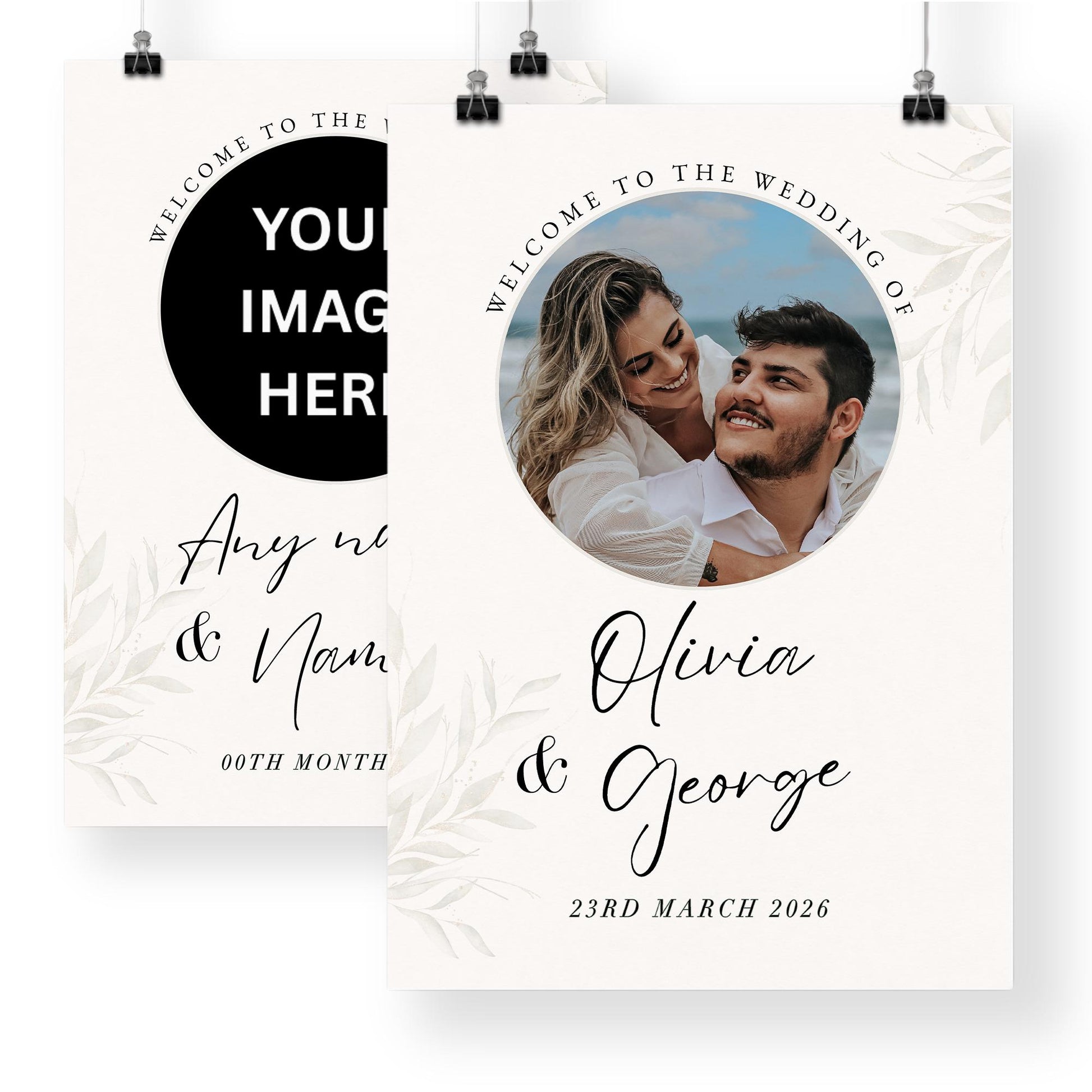 Welcome your guests with elegance using this Neutral Leaves Wedding Welcome Print, designed in a soft botanical style with subtle leaf detailing. Perfectly personalisable with: