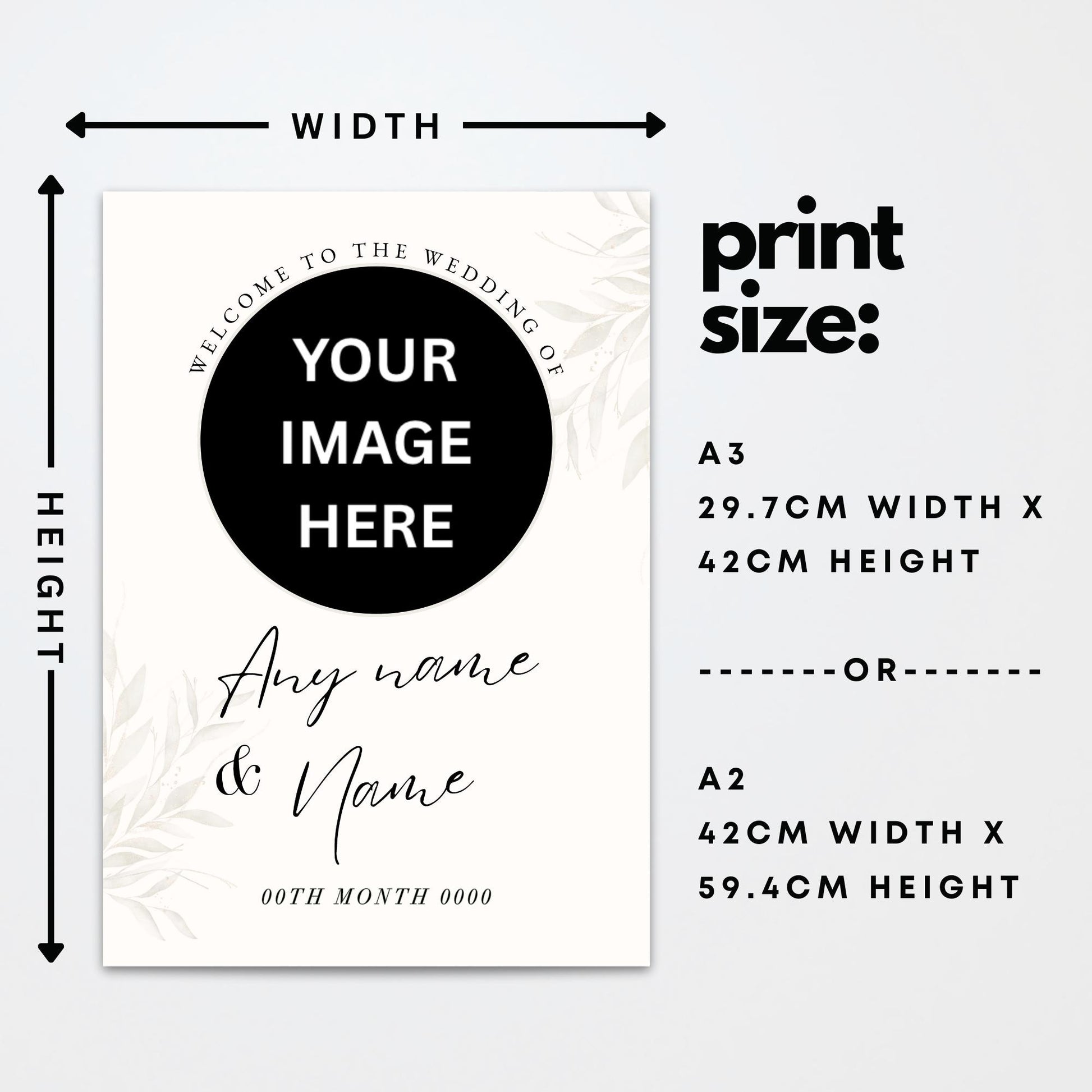 Personalised Wedding Photo Print Neutral Leaves Muted Style Custom Poster Wedding Reception Decor or Engagement Party Decoration