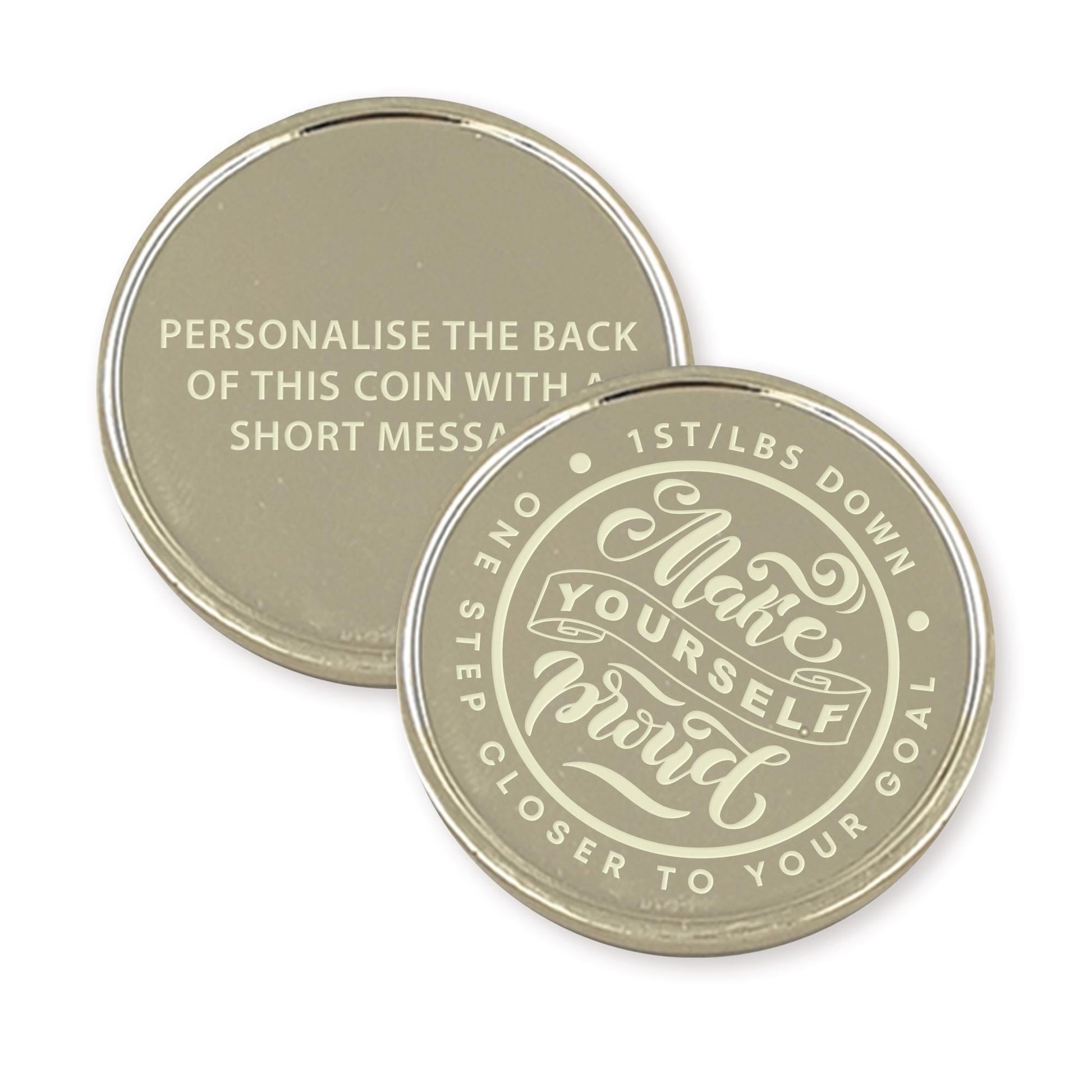 Personalised Weight Loss Milestone Coin “Make Yourself Proud Custom Weight Motivational Fitness Token 1st/Lbs/Kg Marker Gift