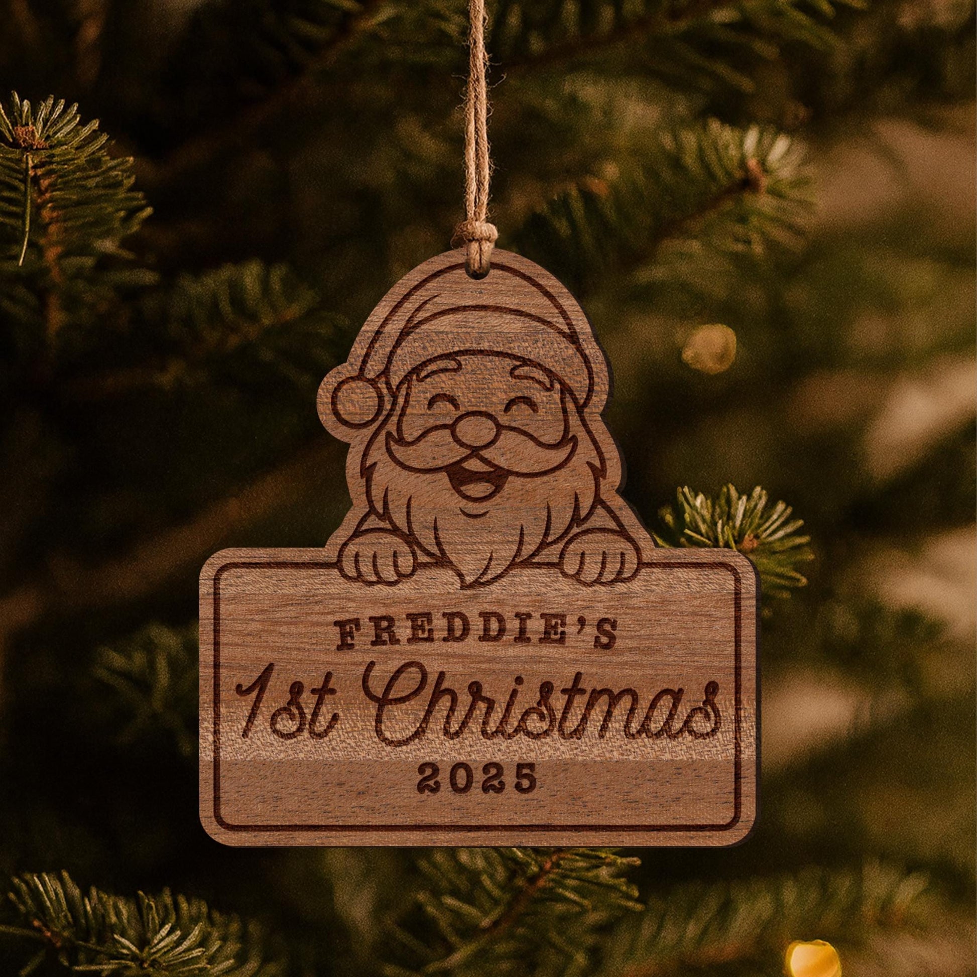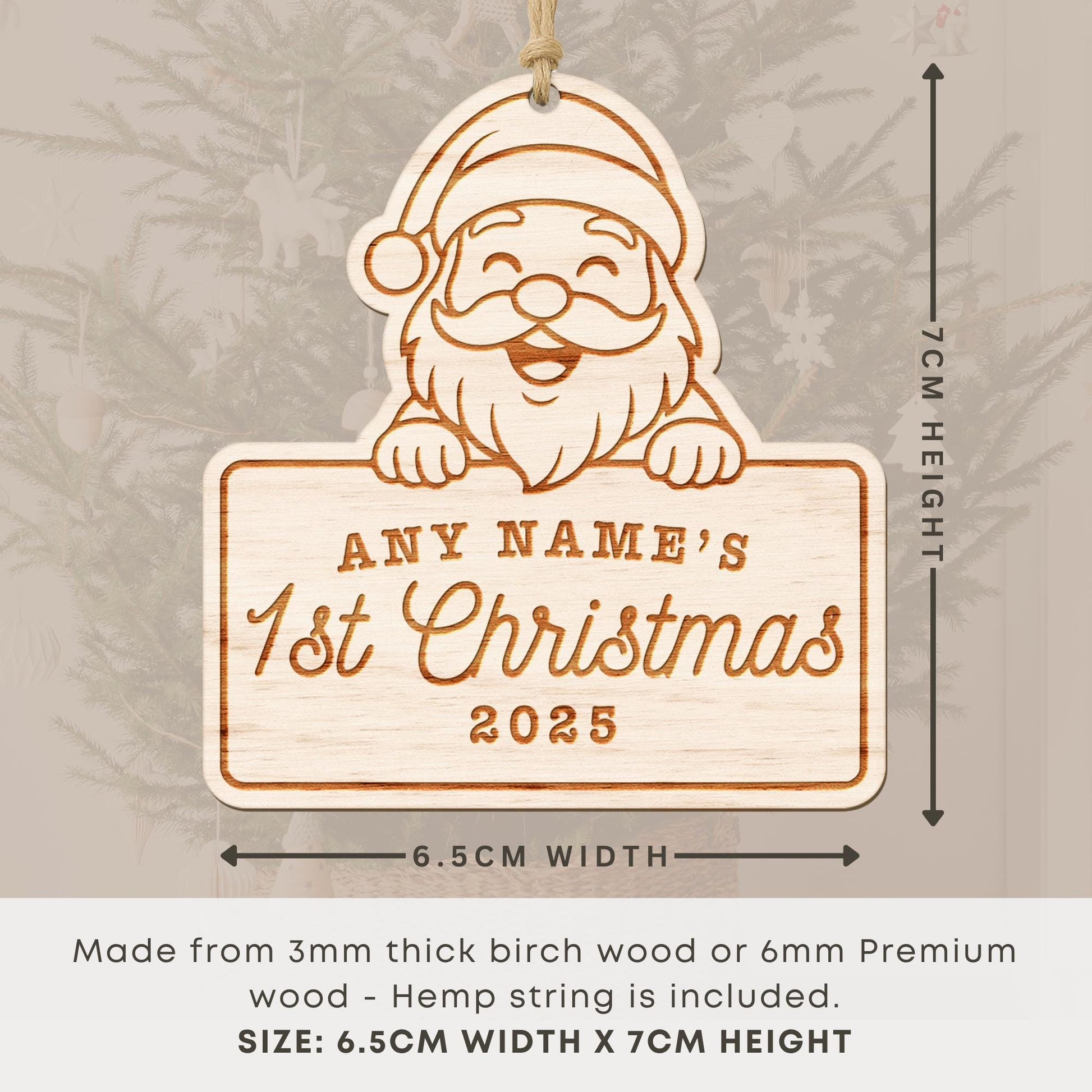 Personalised Wooden Christmas Bauble Santa: Custom Babys First Christmas Ornament | Engraved Name & Year Keepsake | Babys Name 1st Xmas