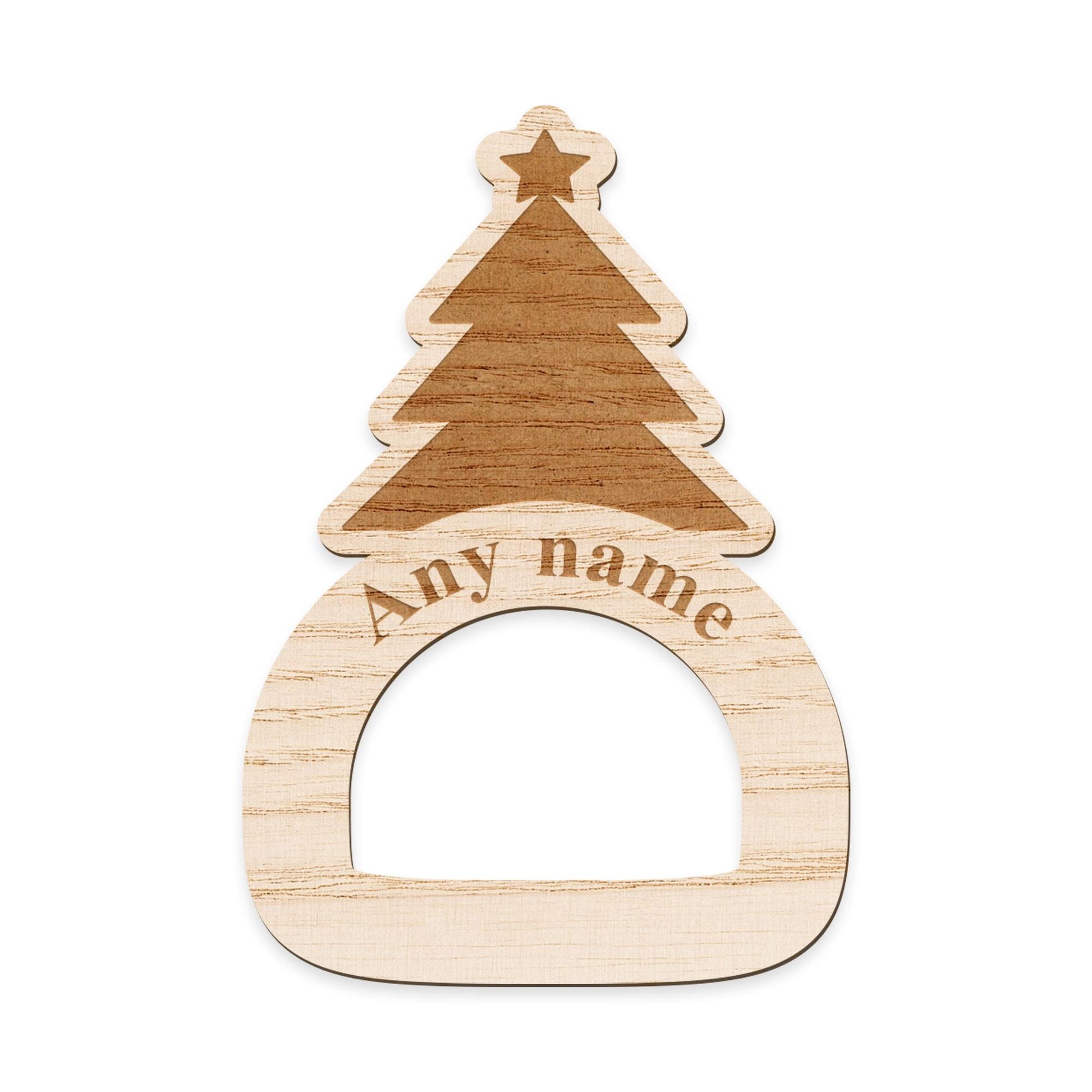Personalised Wooden Christmas Tree Napkin Ring Engraved Name Place Setting, Rustic Festive Table Decoration, Wooden Christmas Tableware