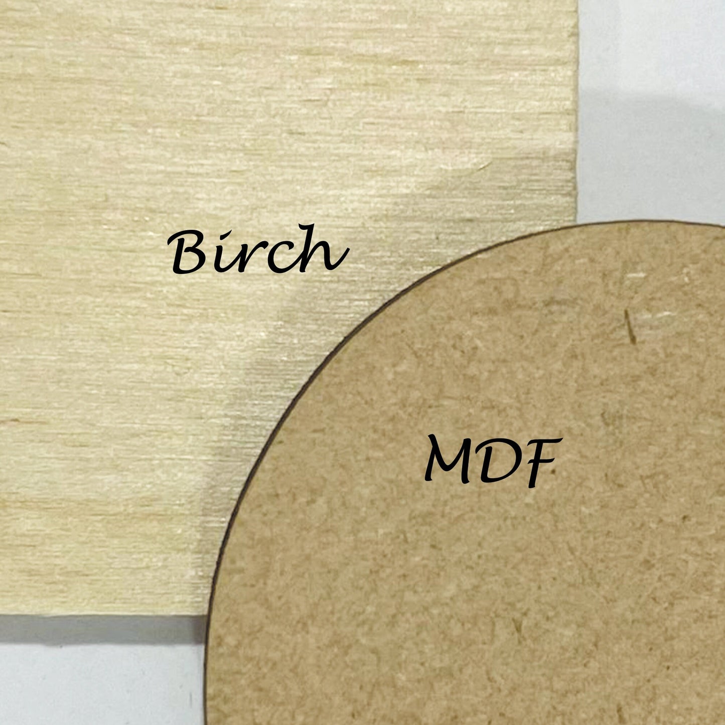 With a choice of MDF (Shown in the picture) or Birch wood. Each 3mm thick