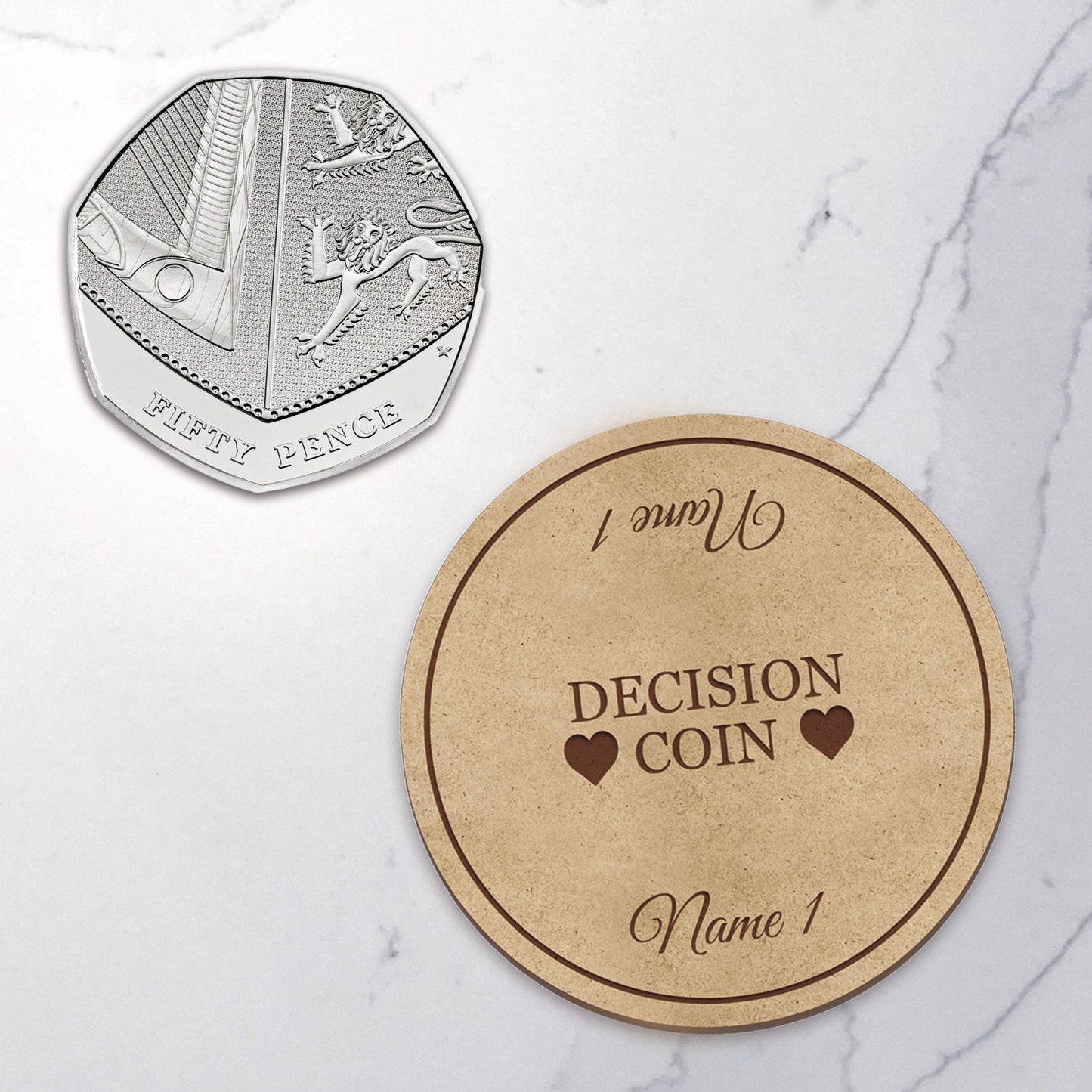 Personalised Wooden Decision Coin Couples Decision Coin Fun Valentines Day Husband & Wife Anniversary gift