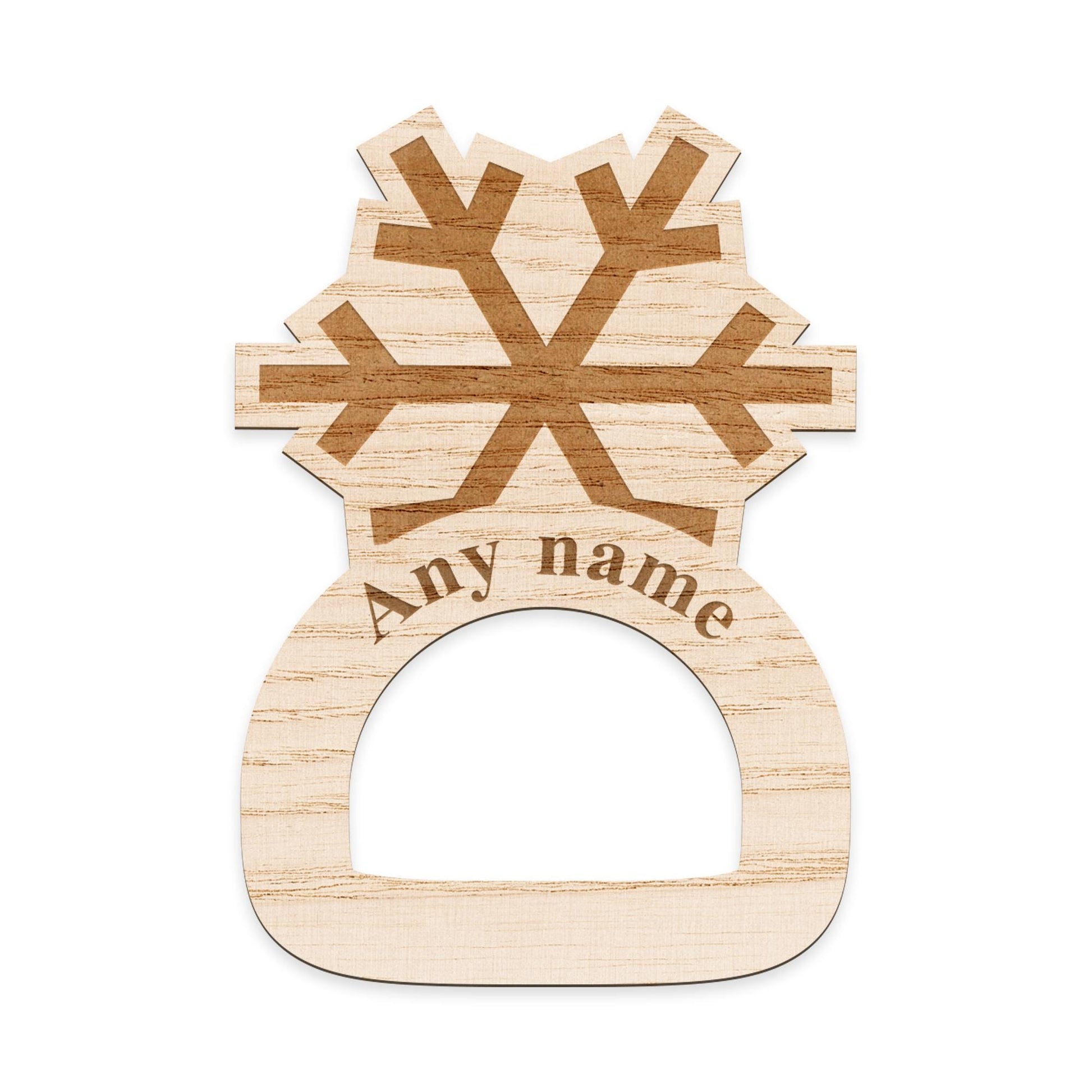 Personalised Wooden Snowflake Napkin Ring Custom Name Engraved Place Setting, Winter or Christmas Table Decoration, Festive Tableware