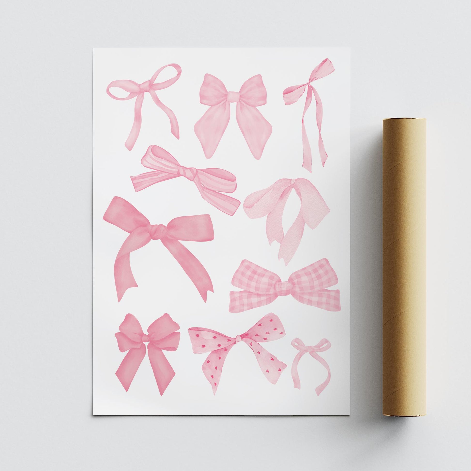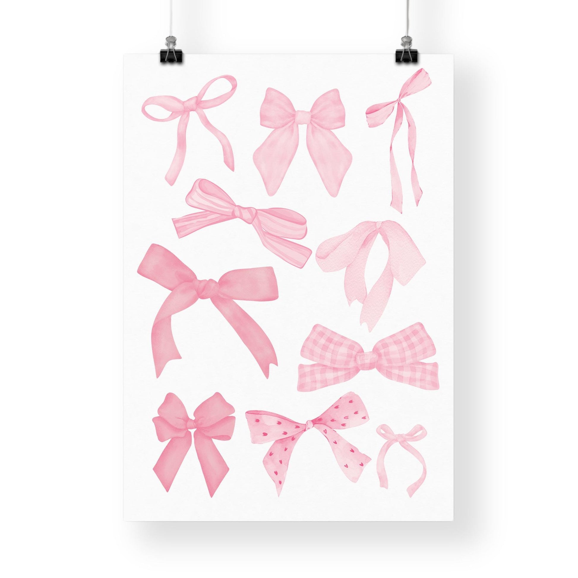 Pink Bow Poster: Coquette Aesthetic Print, Cute Pink Bows Wall Art, Chic Home Decor, Modern Art, Trendy Interior Design, Girly Stylish Decor