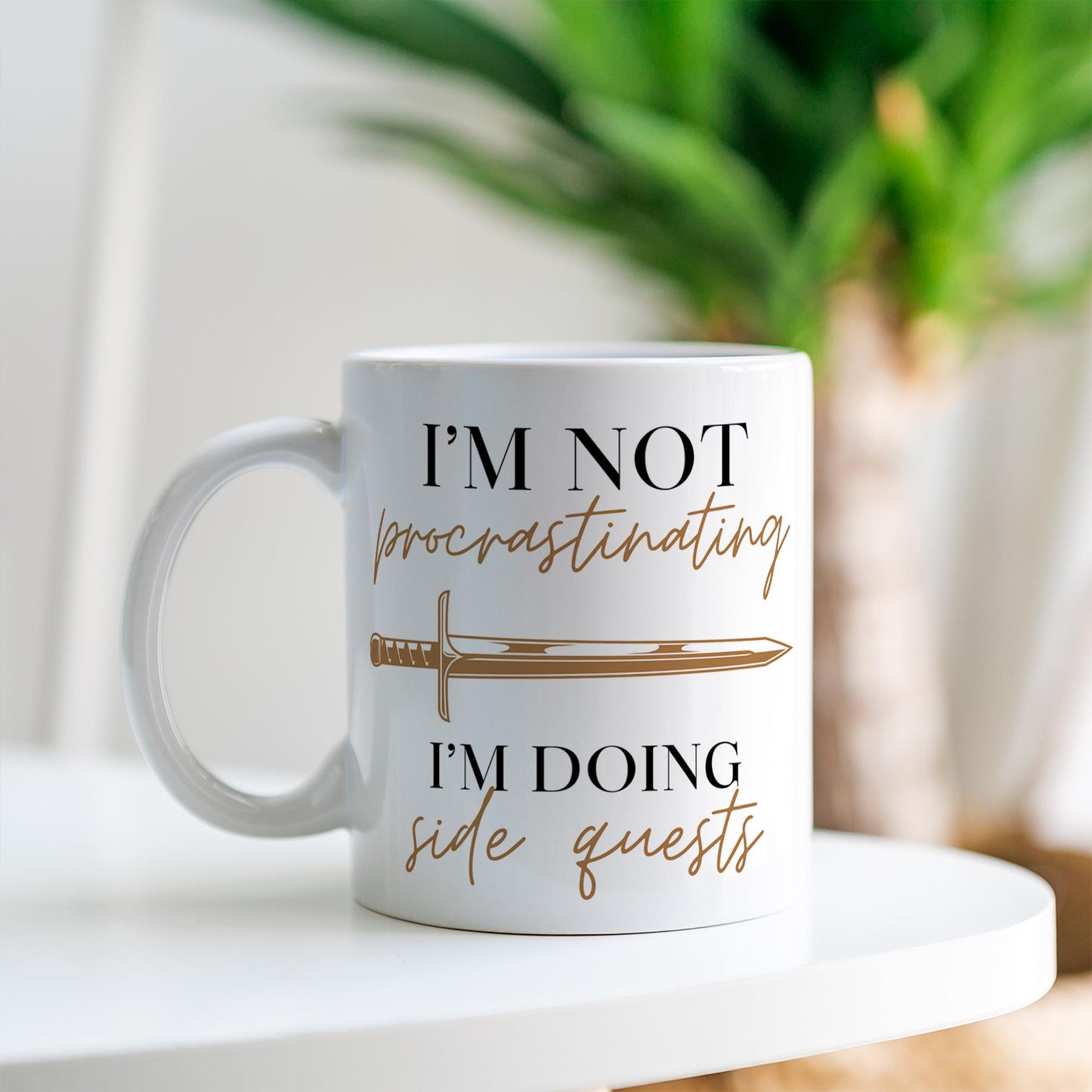 Procrastinating Mug - Sword: Funny Mug - Side Quests - Gamer Humour Gift, Funny Work Mug, Gift For Gamers, Witty Coffee Cup