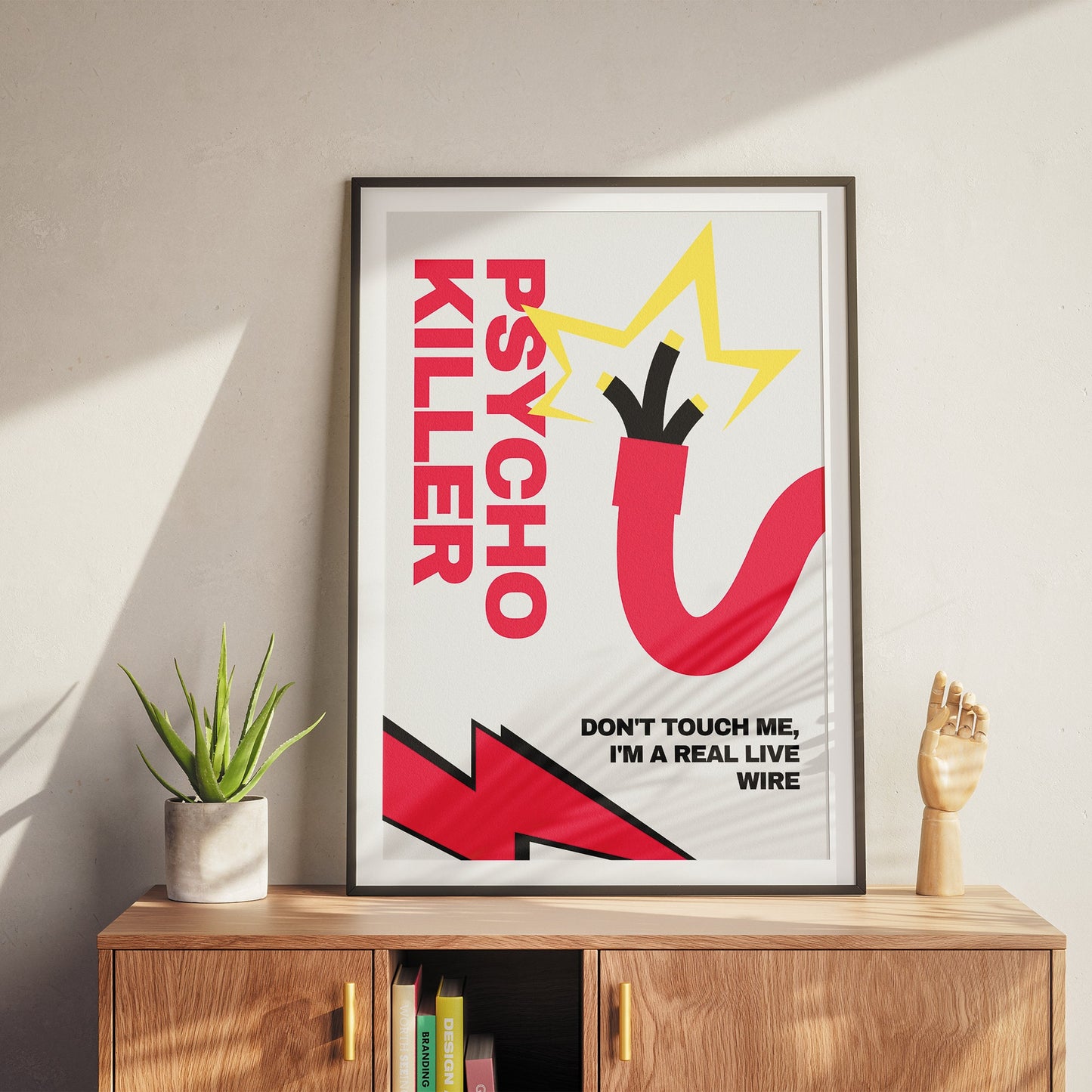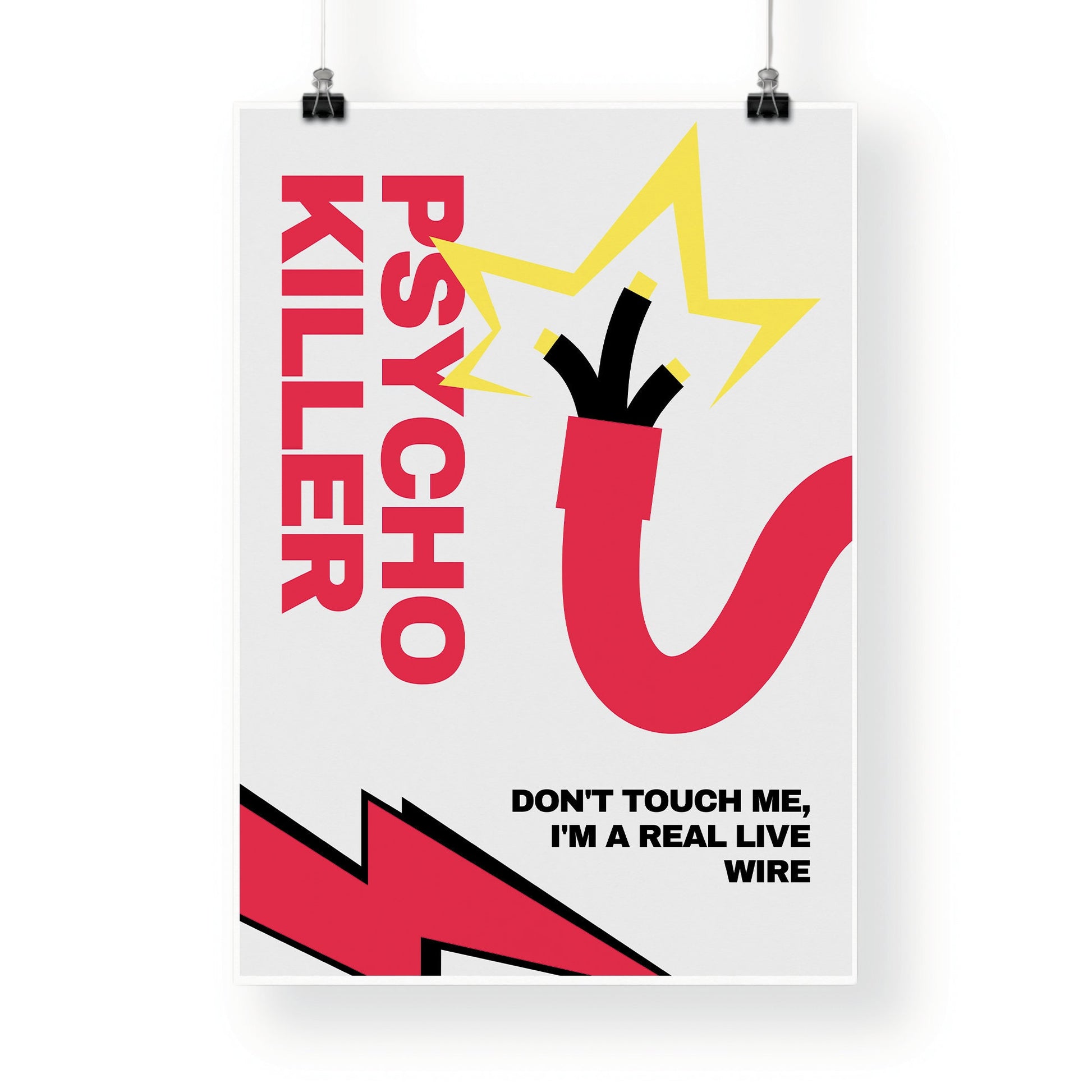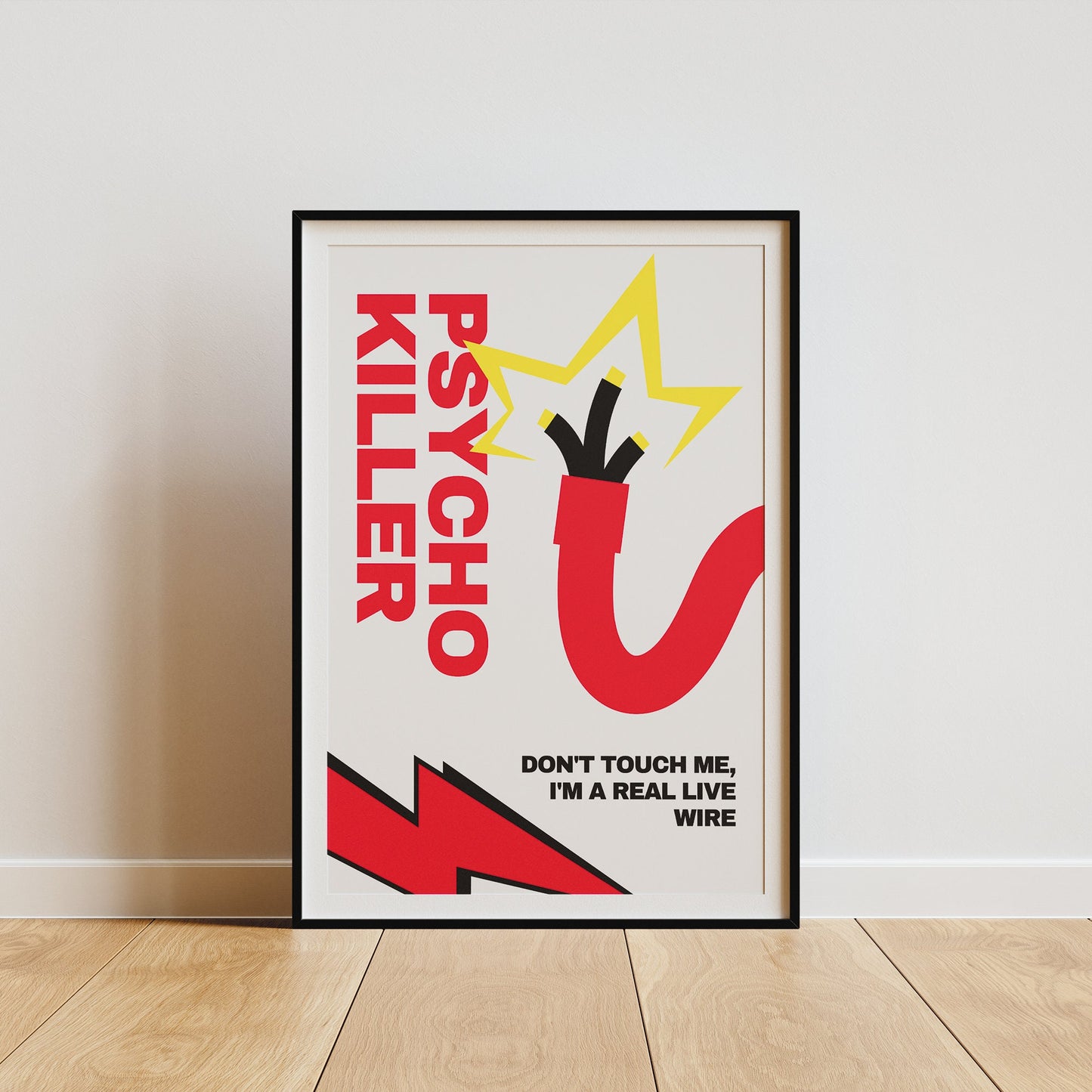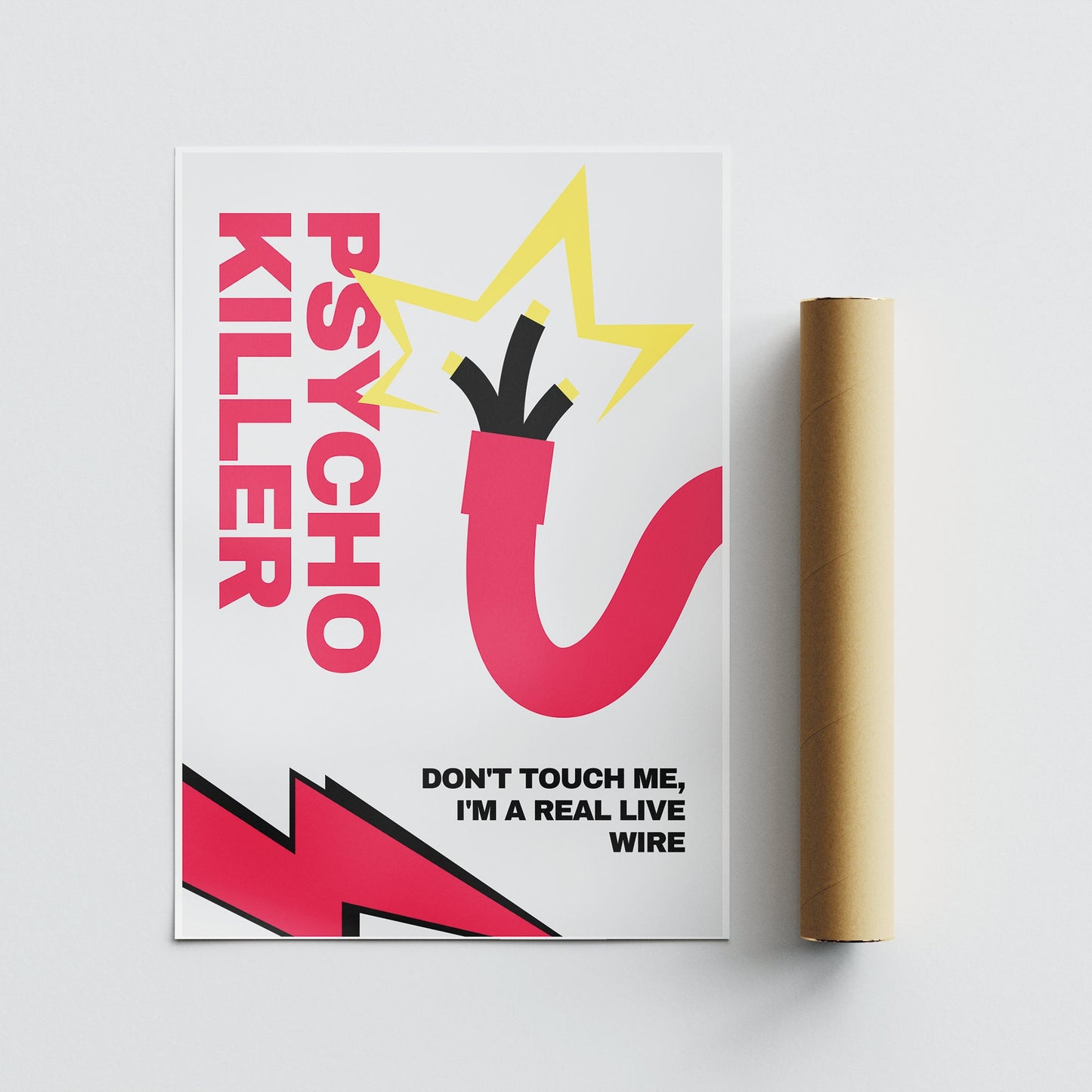 Psycho Killer - Live Wire Print: Talking Heads Lyric Poster, Song-Inspired Wall Art, Iconic Music, Alternative Home Decor, Retro Print