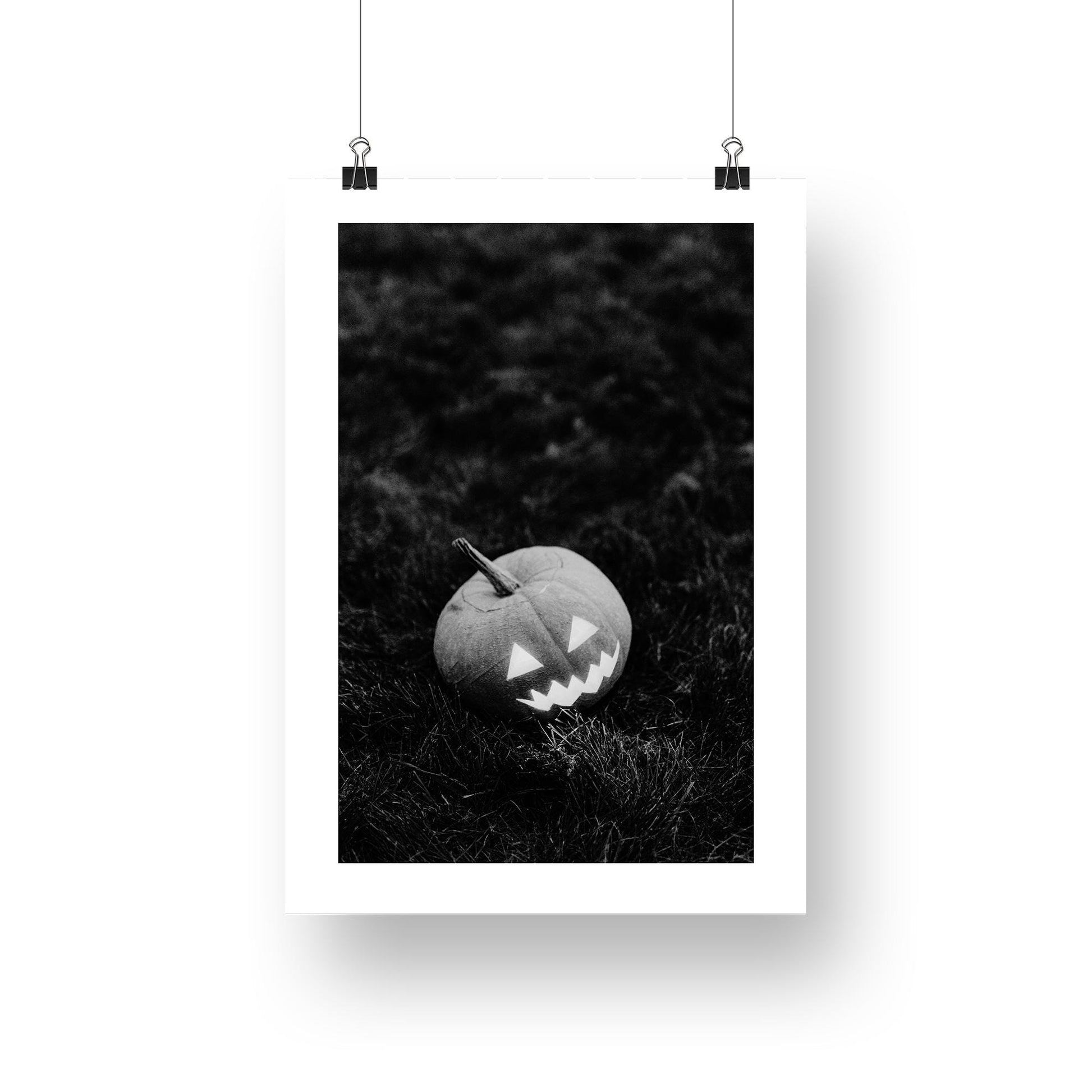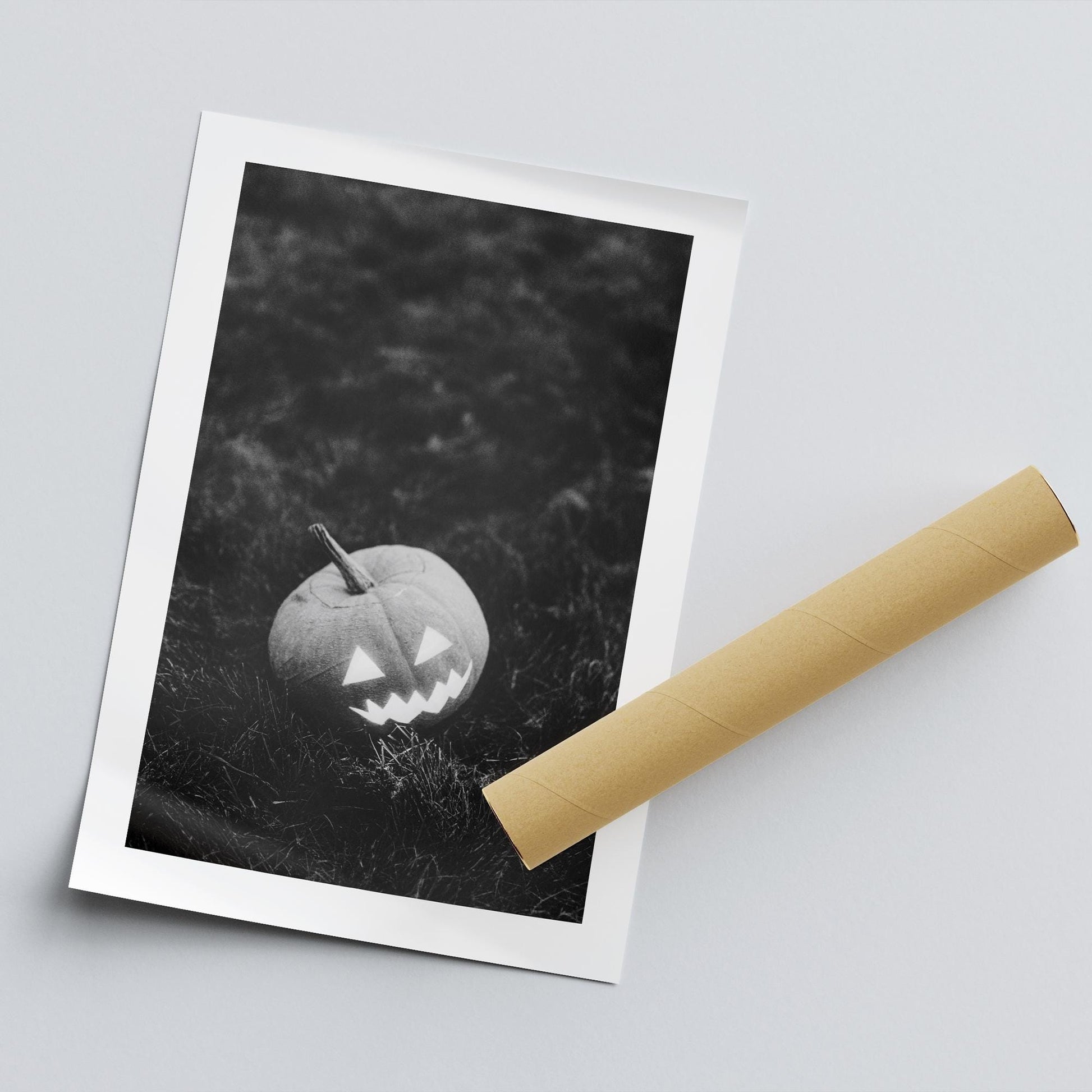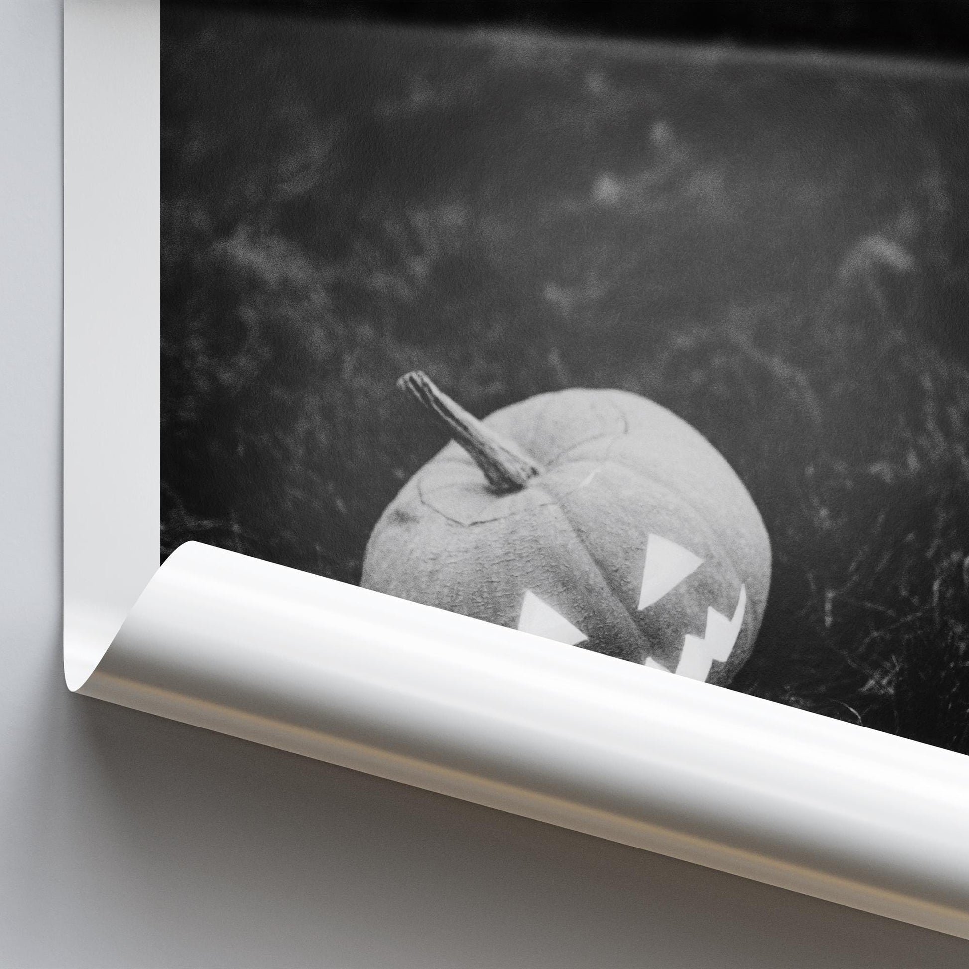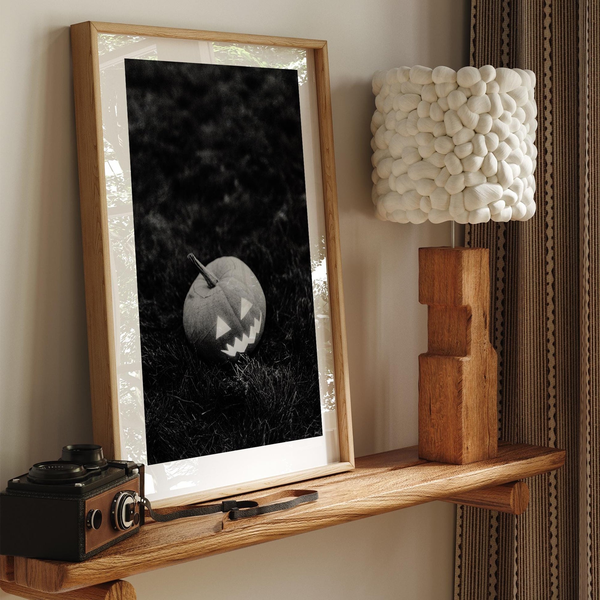 Pumpkin B&W Photography Poster: Seasonal Decor, Fall Wall Art, Spooky Vibes Print, Halloween Poster, Autumnal Home Decor Gift, Spooky Art