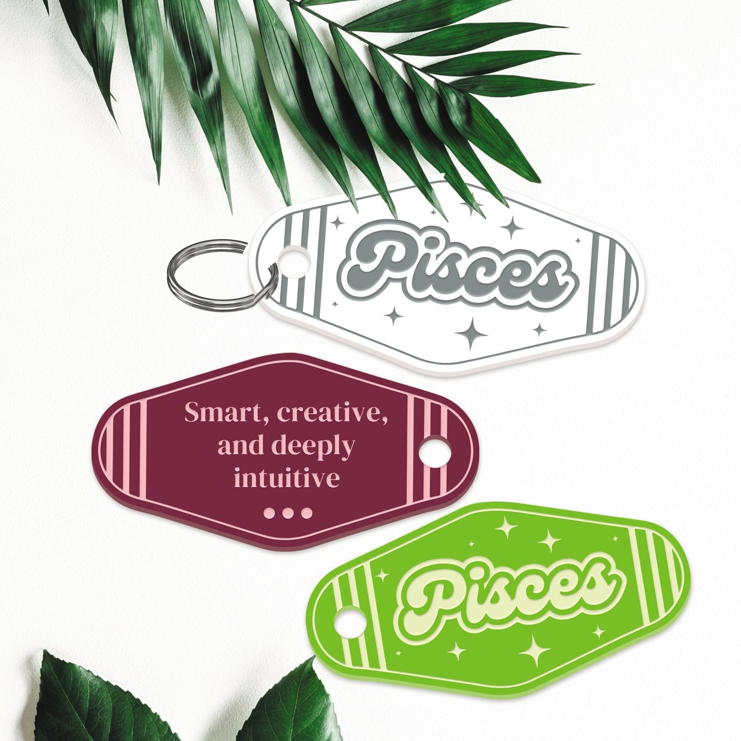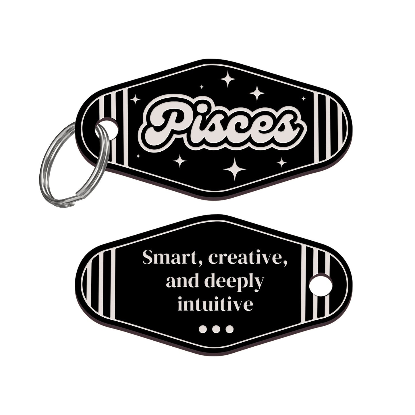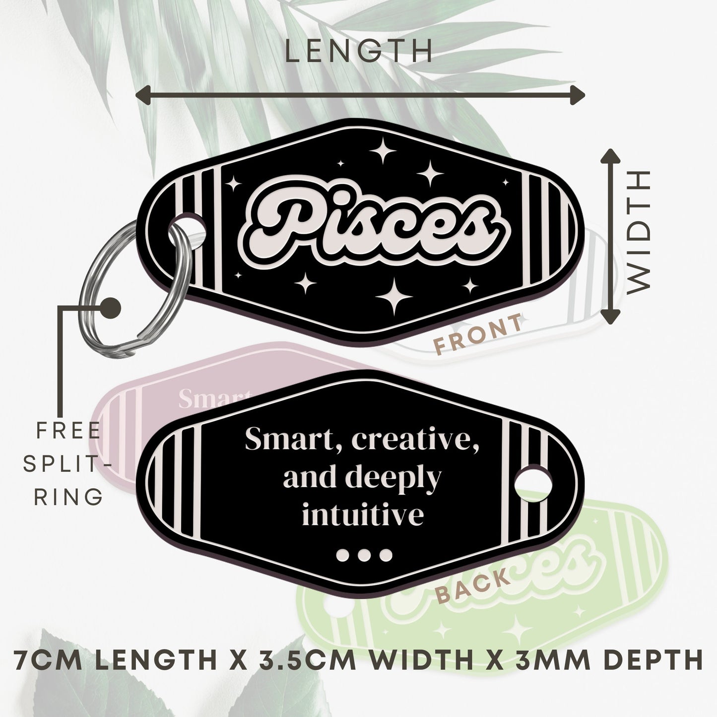 Retro Star Sign - Pisces Keyring: Acrylic Motel-Style Zodiac Keychain, Astrology Accessory Gift for Birthday, Horoscope Present