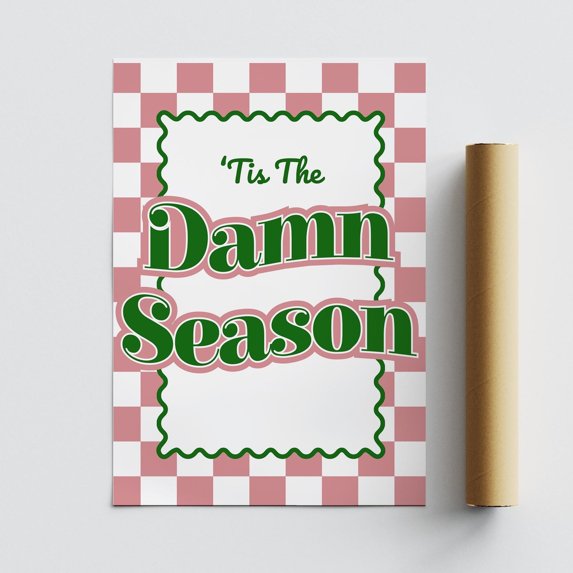Bring vintage Christmas vibes into your home with this checkered "’Tis The Damn Season" print. Featuring bold green and pink typography framed in a retro-inspired design, this gloss print makes a playful festive statement. Perfect for seasonal decorating or gifting to fans of music-inspired designs.