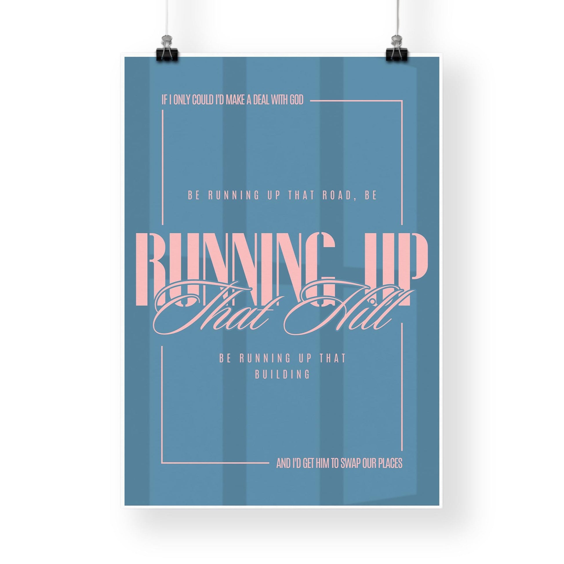 Running Up That Hill Lyric Inspired Poster Retro Pink and Blue Wall Art Print