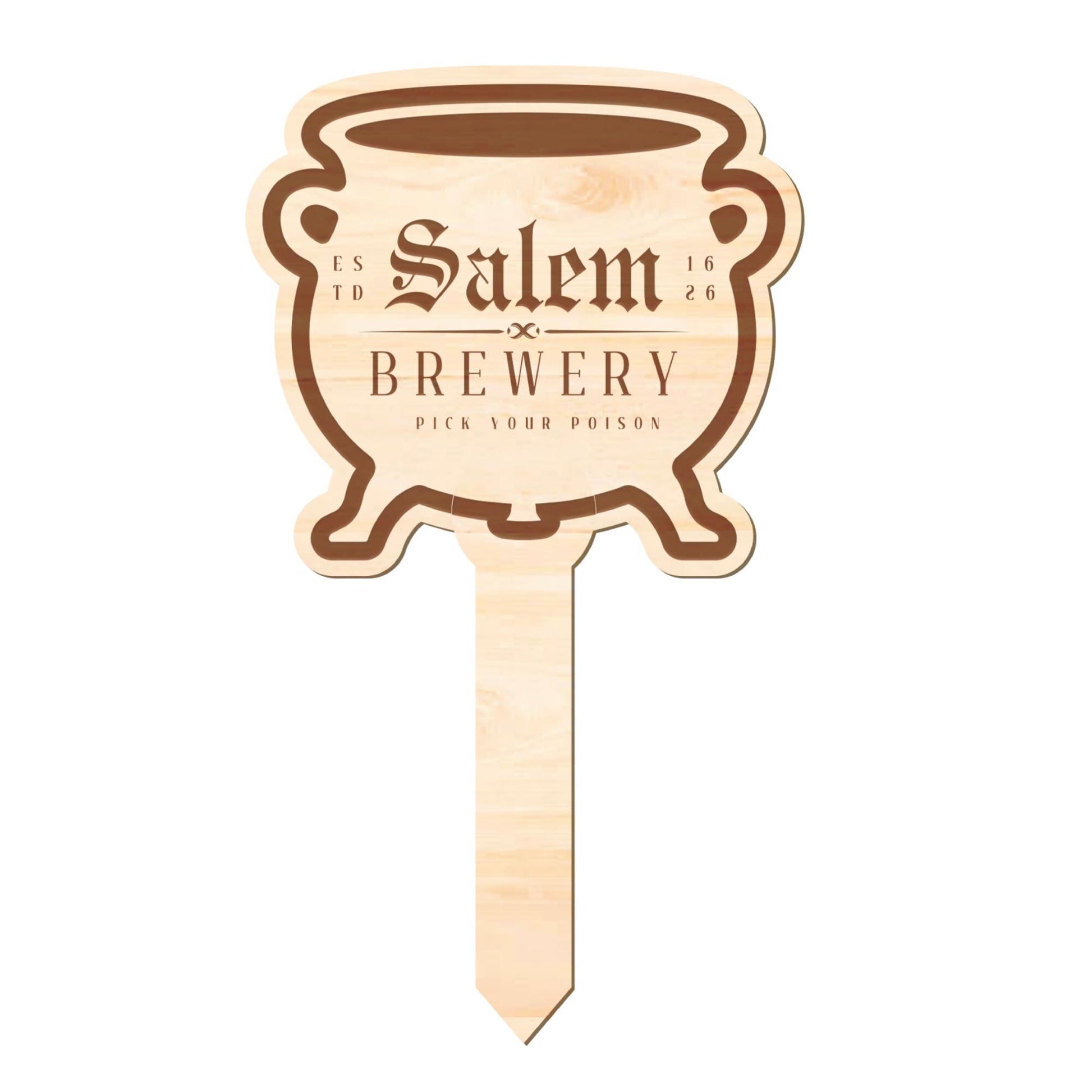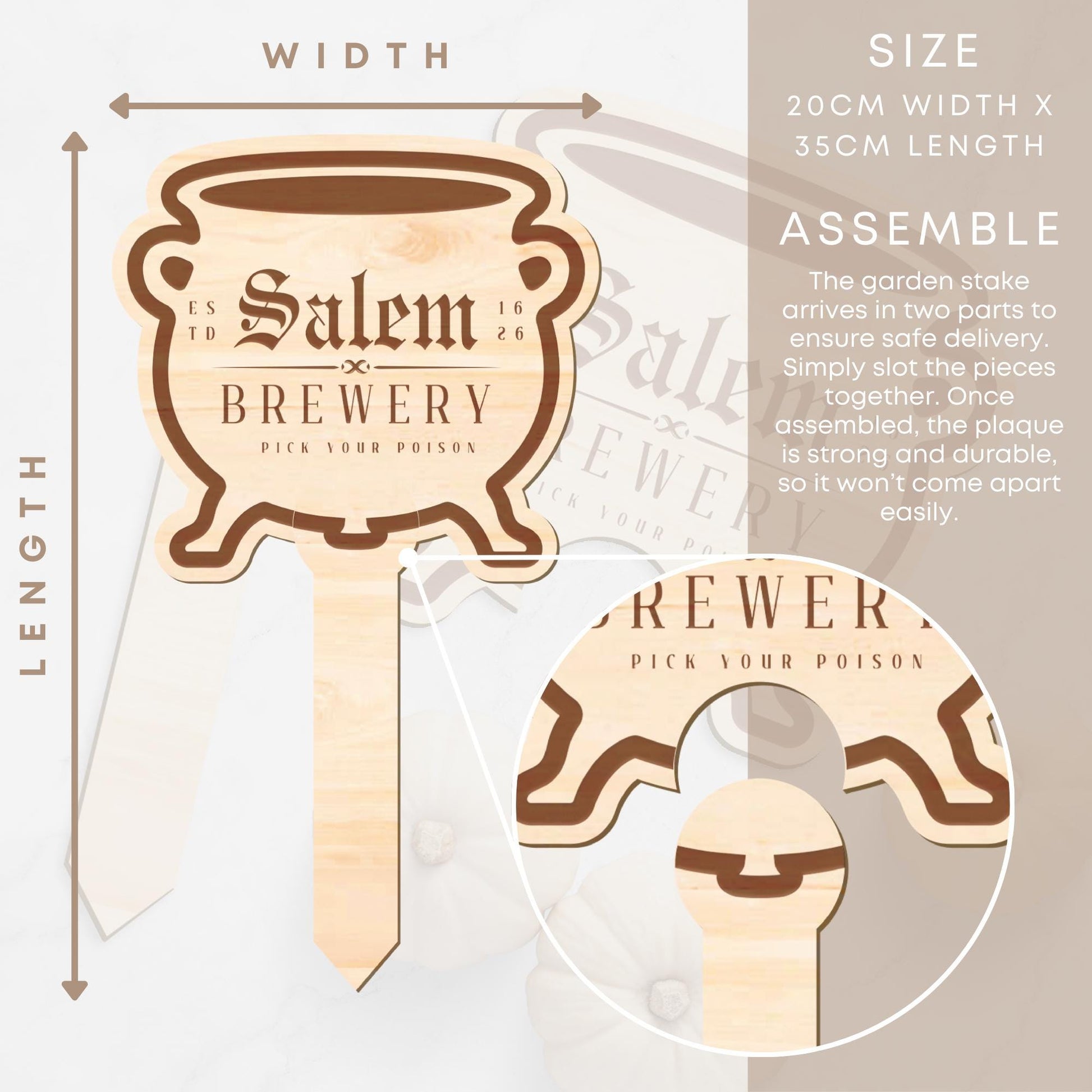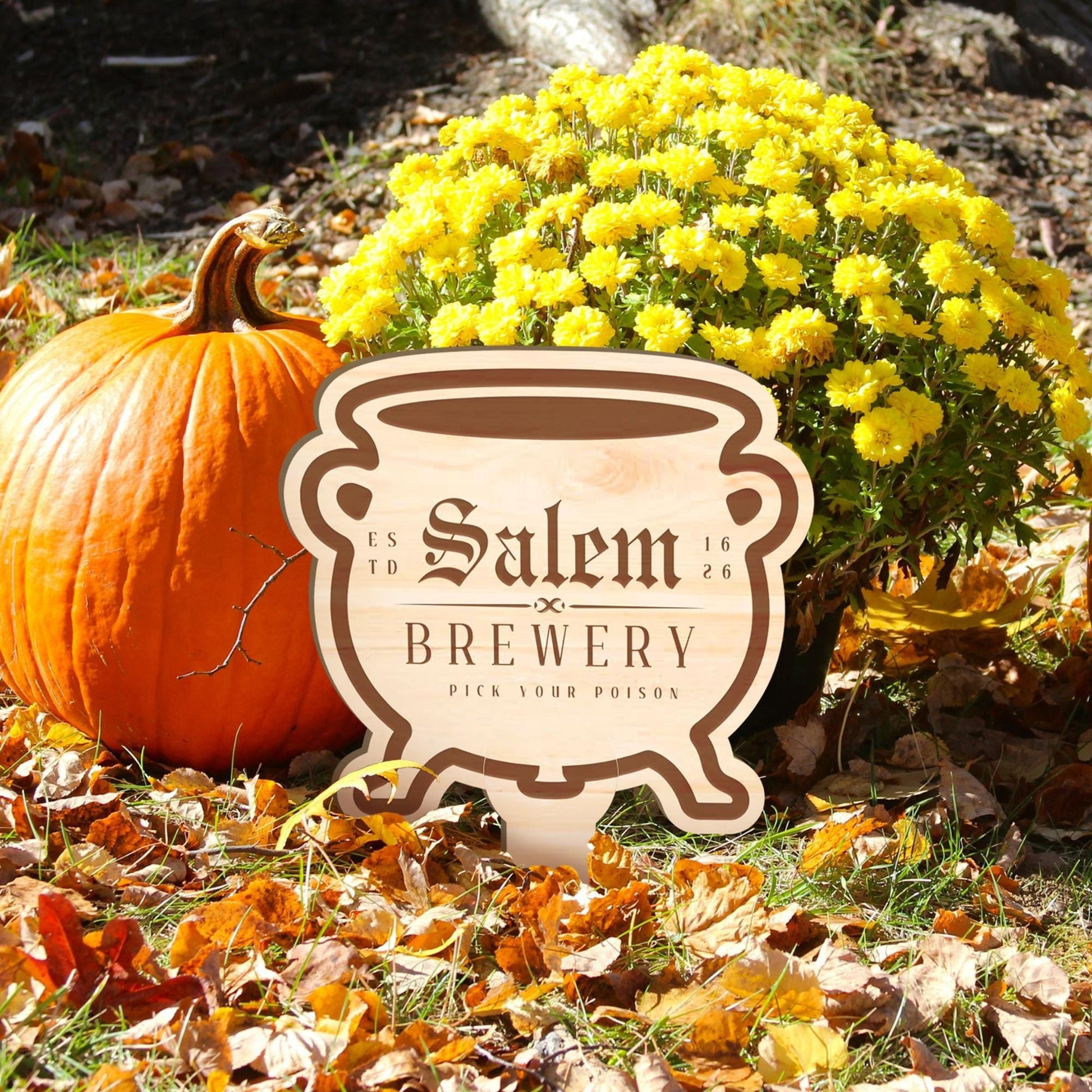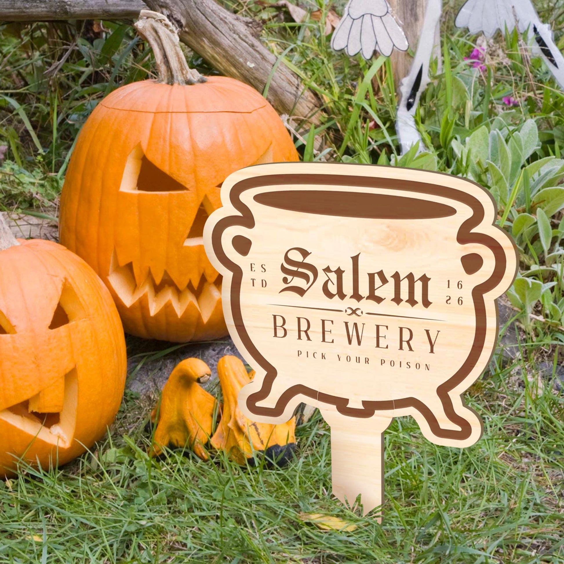 Salem Brewery - Cauldron Garden Plaque: Halloween Outdoor Decoration, Wooden Garden Decor, Witch-Themed Decor, Halloween Party Decorations