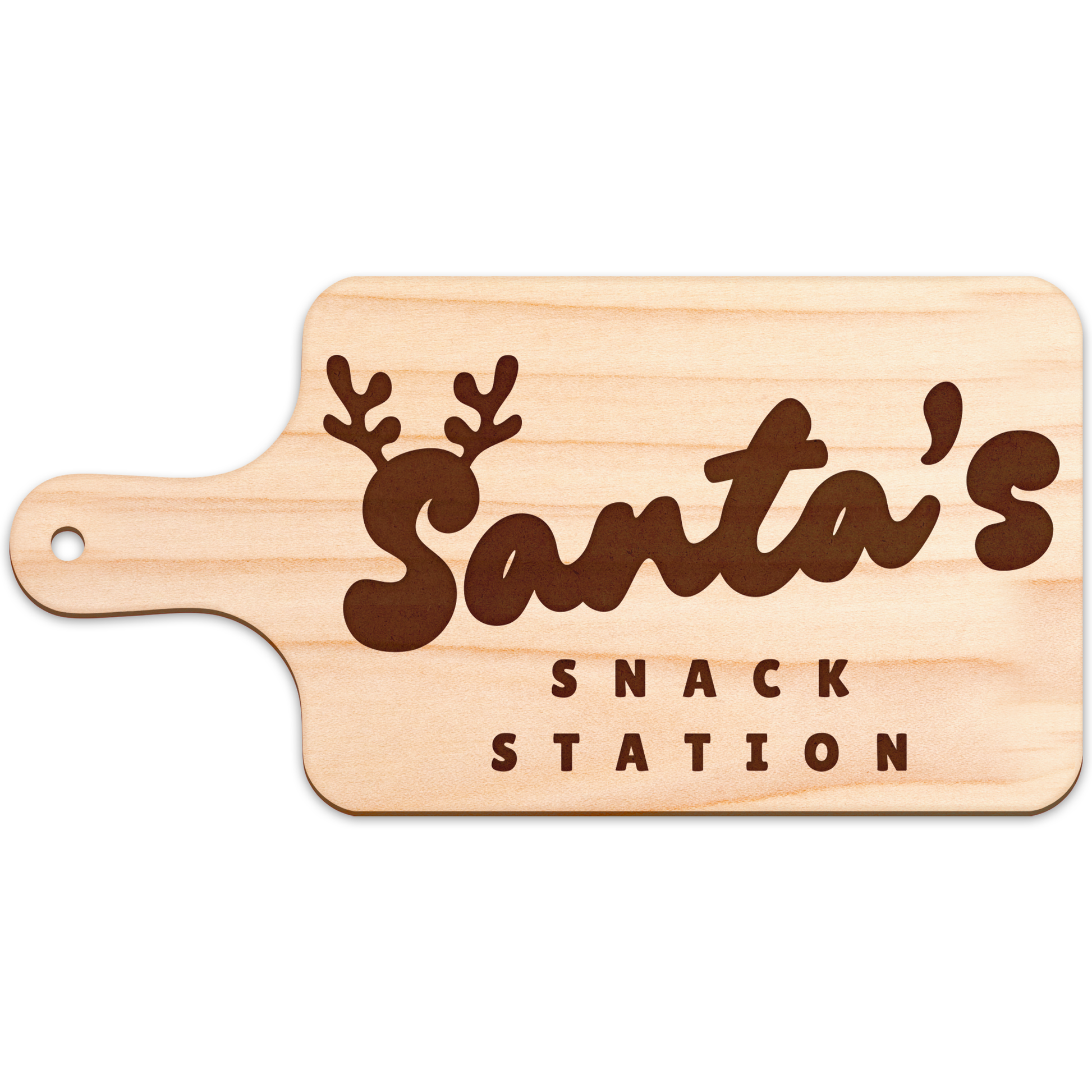 Add festive fun to your Christmas Eve setup with this Santa’s Snack Station board featuring a playful reindeer antlers design. Perfect for Santa’s milk, cookies, and Rudolph’s carrot, each one is laser-engraved on 6mm natural wood and available in maple, oak, walnut, cherry, sapele, or white ash.
